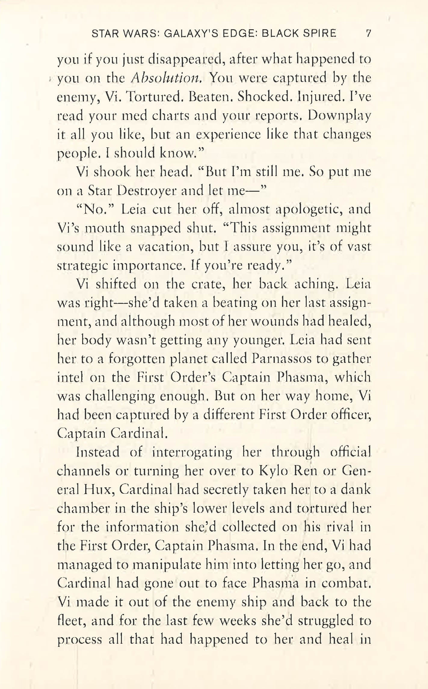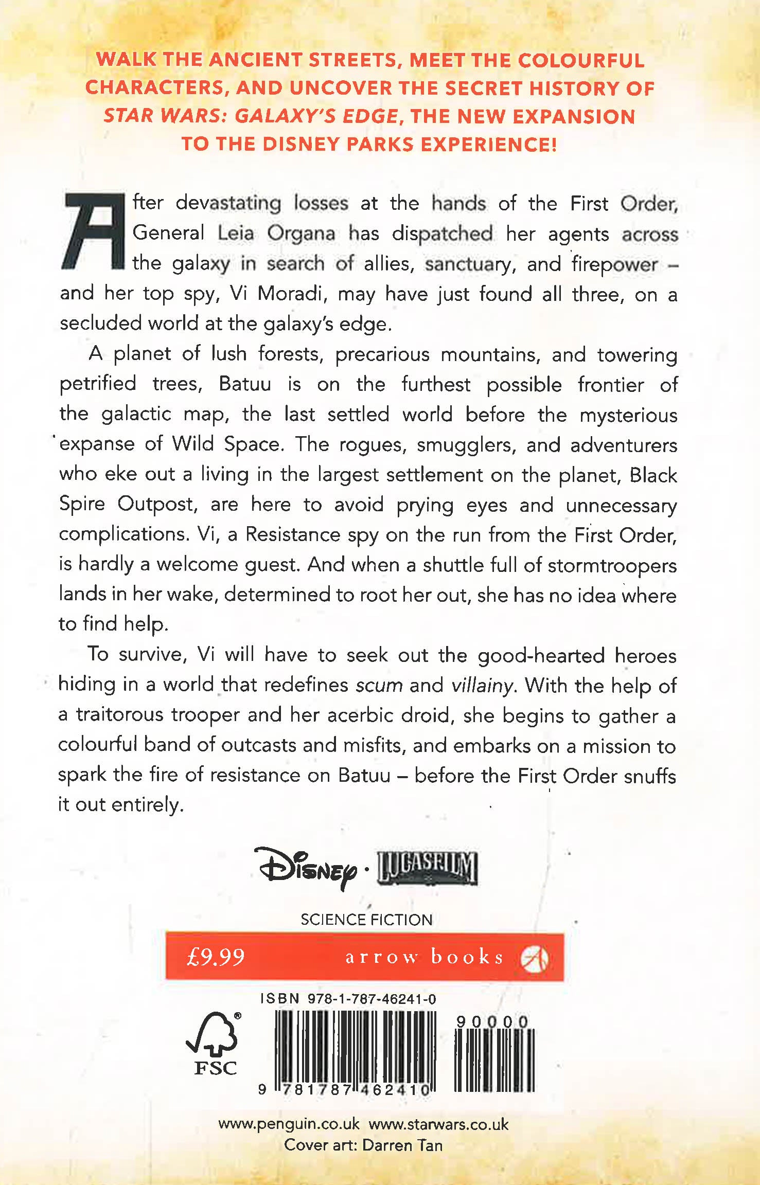 A planet of lush forests, precarious mountains, and towering, petrified trees, Batuu is on the furthest possible frontier of the galactic map, the last settled world before the mysterious expanse of Wild Space. The rogues, smugglers, and adventurers who eke out a living on the largest settlement on the planet, Black Spire Outpost, are here to avoid prying eyes and unnecessary complications. Vi, a Resistance spy on the run from the First Order, is hardly a welcome guest. And when a shuttle full of stormtroopers lands in her wake, determined to root her out, she has no idea where to find help.