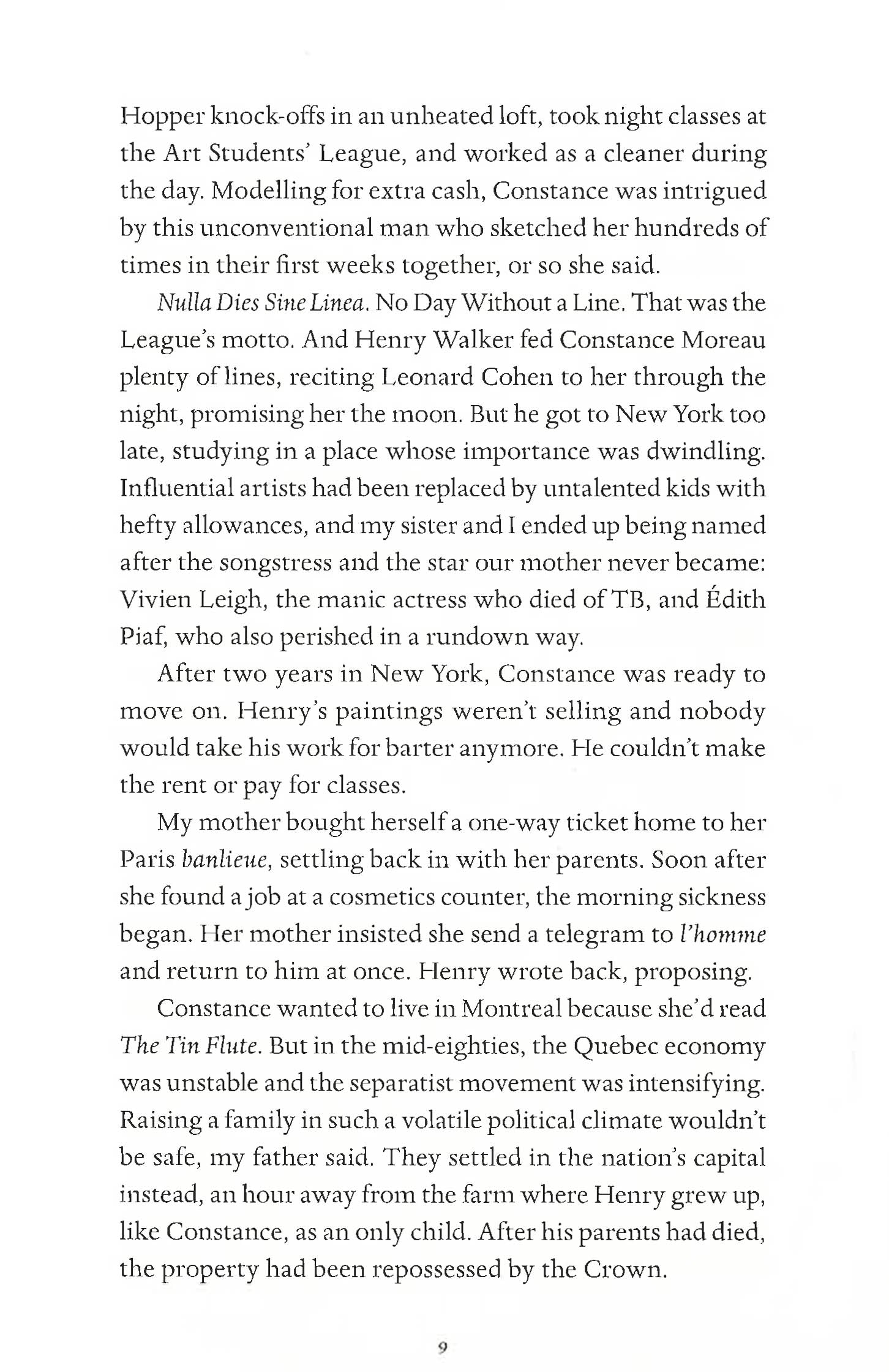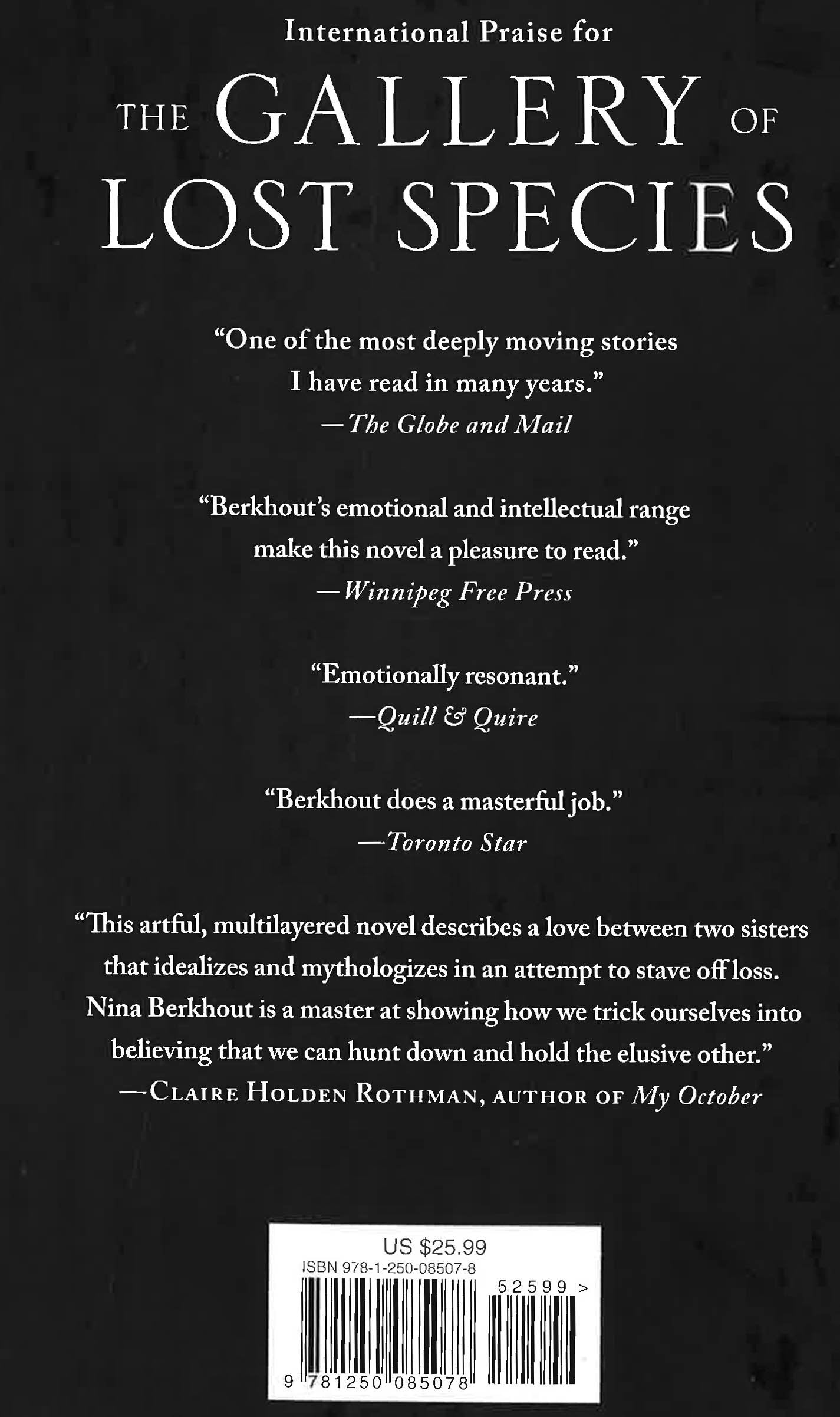 Edith grows up in her big sister Vivienne's shadow. While the beautiful Viv is forced by the girls' overbearing mother to compete in child beauty pageants, plain-looking Edith follows in her father's footsteps: collecting oddities, studying coins, and reading from old books. When Viv rebels against her mother's expectations, Edith finds herself torn between a desire to help her sister and pursuing her own love for a boy who might love her sister more than he loves her. When Edith accepts a job at the National Gallery of Canada, she meets an elderly cryptozoologist named Theo who is searching for a bird many believe to be extinct. Navigating her way through Vivienne's dark landscape while trying to win Liam's heart, Edith develops an unlikely friendship with Theo when she realizes they might have more in common than she imagined; they are both trying to retrieve something that may be impossible to bring back to life. Nina Berkhout's The Gallery of Lost Species is about finding solace in unexpected places - in works of art, in people, and in animals that the world has forgotten.