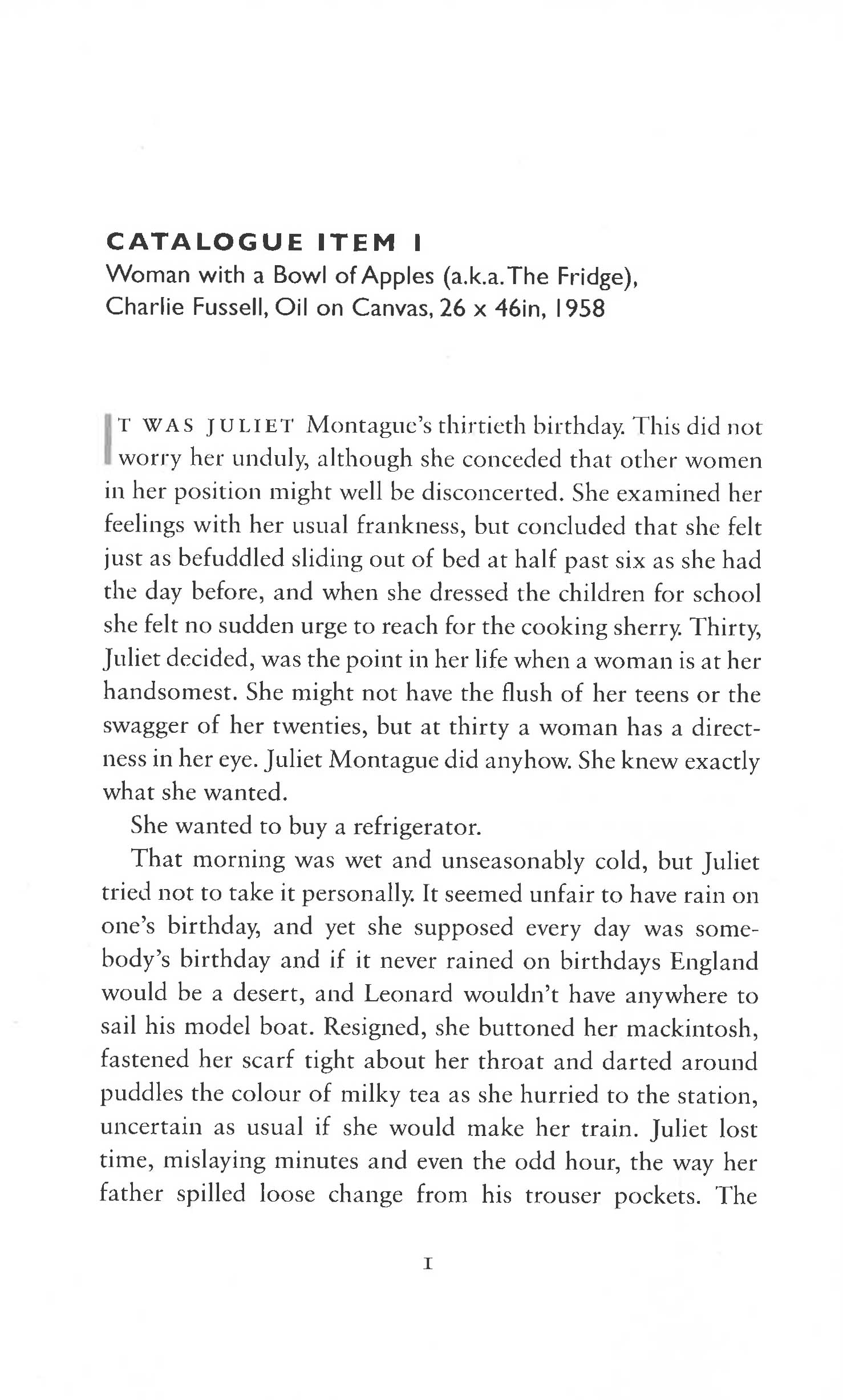 When Juliet Montague's husband disappears, so does she. As far as the conservative Jewish community in which she lives is concerned, she is invisible. She does her best to conform to their rules, but then on her thirtieth birthday she does something unexpected. Instead of the fridge she has scrimped for, she impulsively spends her savings on a portrait of herself.