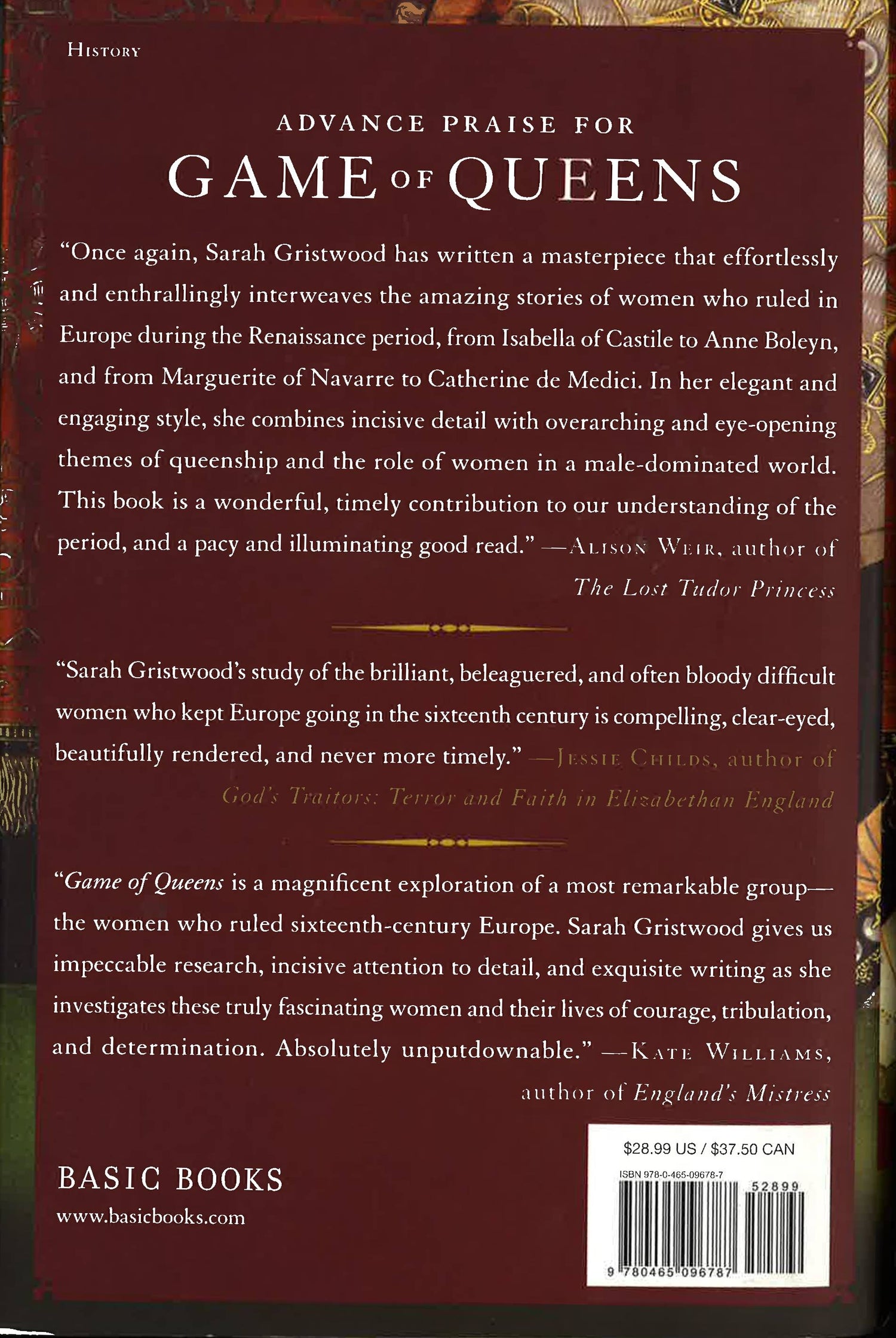 Sixteenth-century Europe saw an explosion of female rule--whether they were on the throne or behind the scenes, women held unprecedented power for more than a hundred years. From Isabella of Castile, her daughter Katherine of Aragon, and her granddaughter Mary Tudor, to Catherine de Medici, Anne Boleyn, and Elizabeth Tudor, these women wielded enormous power over their territories, shaping the course of European history for over a century. Isabella of Castile, armor-clad, followed her soldiers onto the battlefield. Margaret of Austria and Louise of Savoy, two queen regents, put an end to years of war with their "Ladies' Peace." Anne Boleyn was raised in Margaret of Austria's court, surrounded by powerful women; her daughter, Elizabeth Tudor, grew up to be one of the most famous queens in history. Across boundaries and generations, these royal women were mothers and daughters, mentors and protegees, allies and enemies. For the first time, Europe saw a sisterhood of women who exercised their authority in uniquely feminine ways and would not be equaled until modern times. At once a fascinating group biography and a thrilling political epic, Game of Queens explores the lives of some of the most beloved (and reviled) queens in history. From the rise of this age of queens to its eventual collapse, one thing was certain: Europe would never be the same.