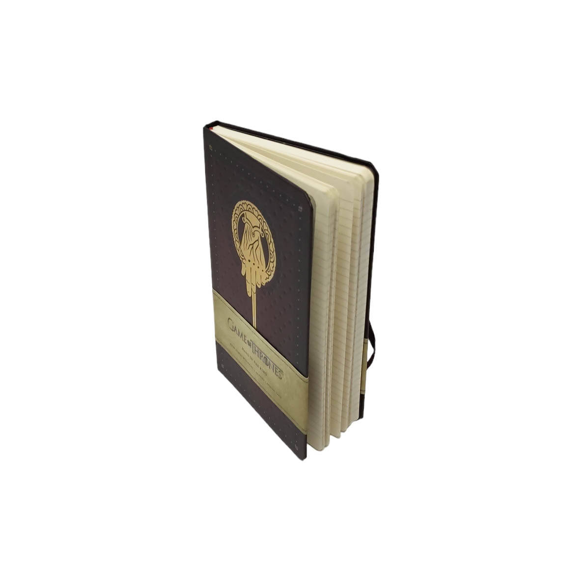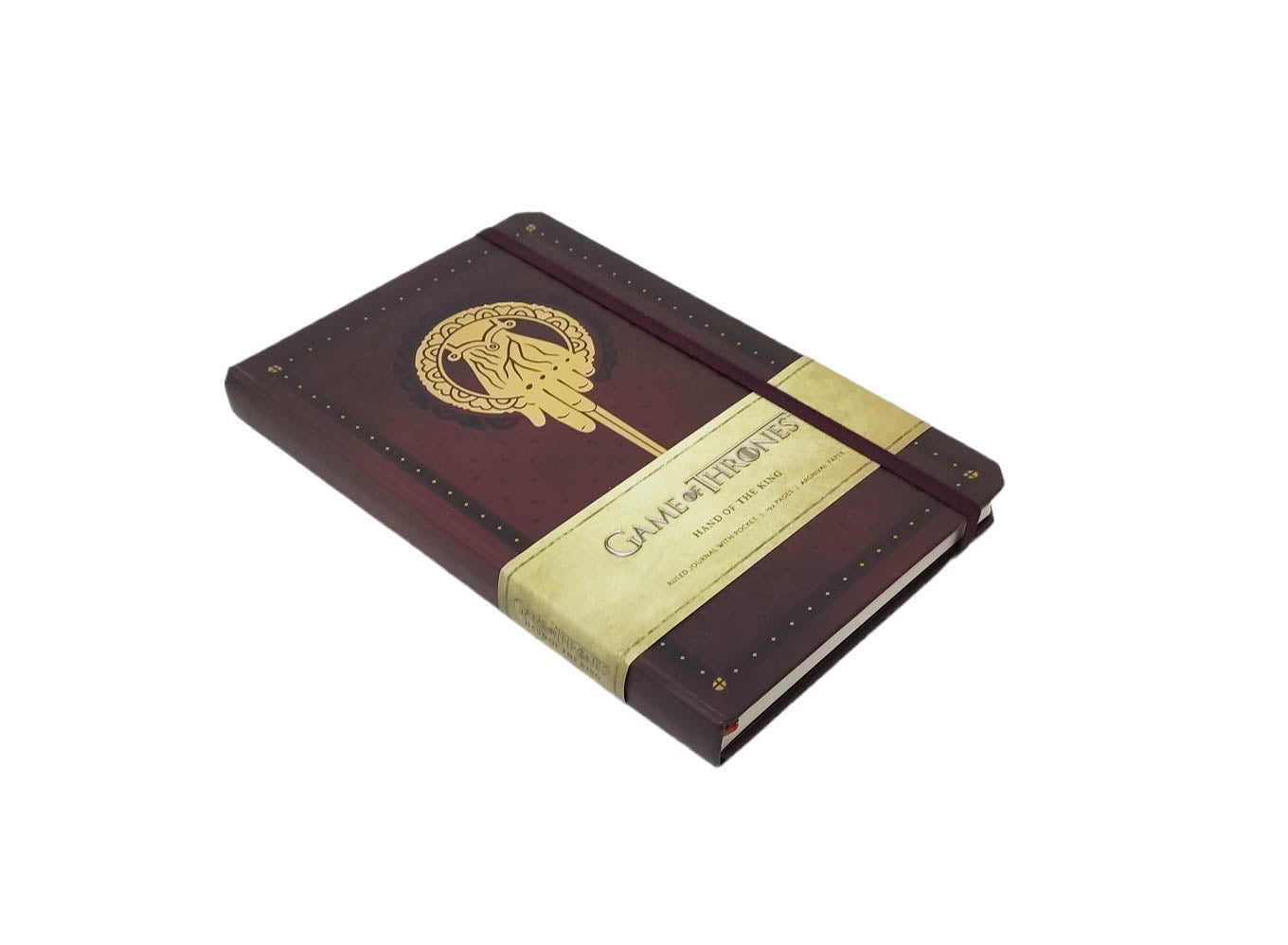 Enter the epic fantasy world of HBO?s Game of Thrones with this stunning new addition to Insight Editions? best-selling journal series, featuring the Hand of the King emblem. The Hand of the King serves as the head of the reigning monarch?s small council in King?s Landing. In the King?s absence, the Hand becomes his proxy. Often the real power behind the throne during the reign of a weak monarch, the King?s Hand wears a badge of office shaped like a hand, symbolizing the authority to make decisions in the King?s name. As the popular saying goes, ?What the King dreams, the Hand builds.? A thrilling new addition to our internationally best-selling line of Game of Thrones stationery, the Game of Thrones: Hand of the King Hardcover Ruled Journal pays homage to this powerful piece of pop culture iconography. With sturdy construction and sewn binding, this journal lies flat, and the 192 lined, acid-free pages of high-quality heavy stock paper take both pen and pencil nicely to invite a flow of inspiration. All this, plus a ribbon placeholder, elastic closure, and 7.5 x 4.5?inch back pocket, perfect for holding photographs and mementos, makes this journal a must-have for fans everywhere.