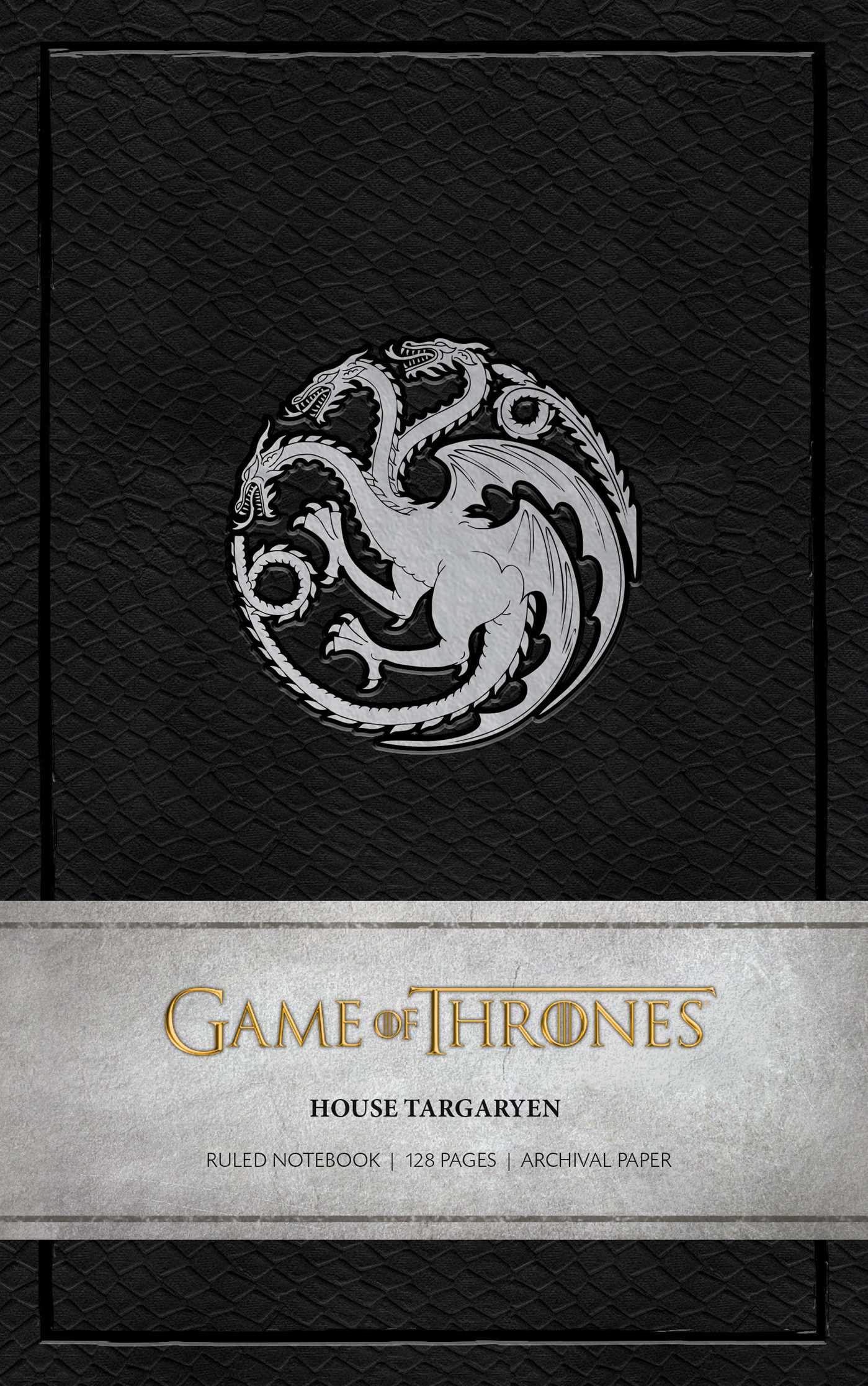 House Targaryen is an ancient and powerful family recently unseated from its long-held position on the Iron Throne. Capable of beneficence, yet merciless when crossed, House Targaryen has a reputation for laying fiery waste to those who oppose their dominance of the Seven Kingdoms. This beautifully crafted ruled notebook features the Targaryens' sigil: The mighty dragon, symbolizing the deadly power of the Targaryen family.