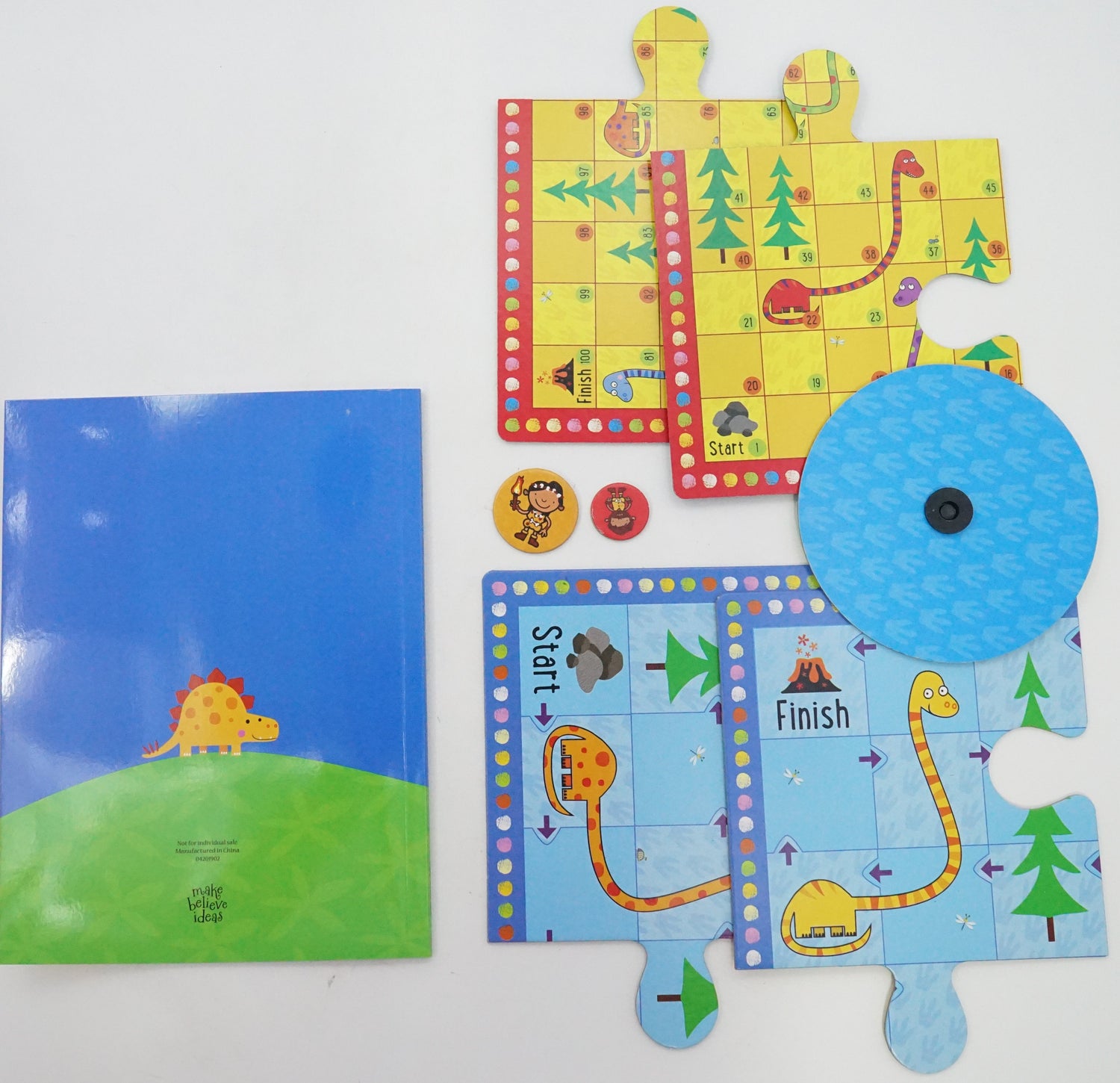 Have fun playing Dino Snakes & Ladders, the classic game with a prehistoric twist! Climb the trees and slide down dinosaur necks as you race around the board to the finish.