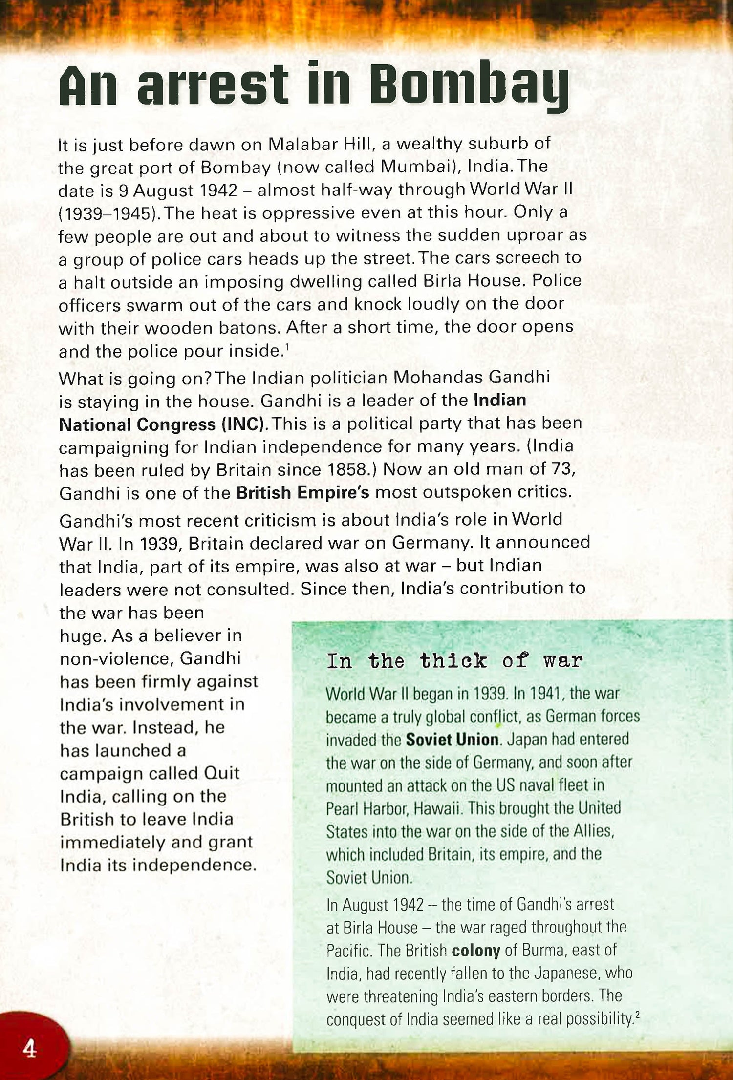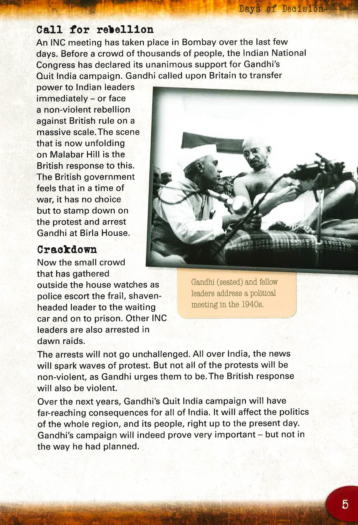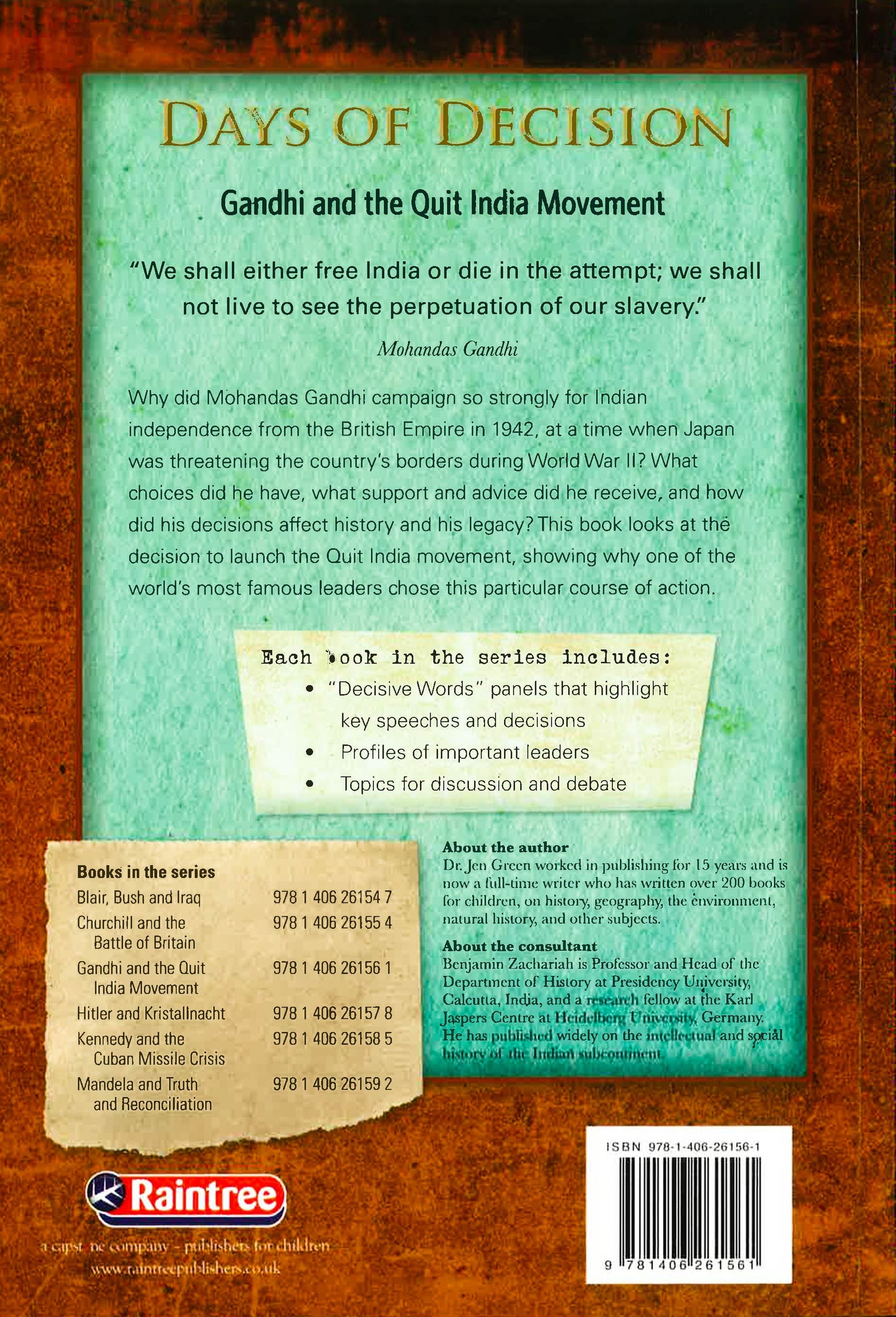Why did Mohandas Gandhi campaign so strongly for Indian independence from the British Empire, at a time when Japan was threatening the country's borders during World War II? What choices did he have, what support and advice did he receive, and how did his decisions affect history and his legacy? This book looks at a controversial event from modern history, showing why one of the world's most famous leaders chose a particular course of action.