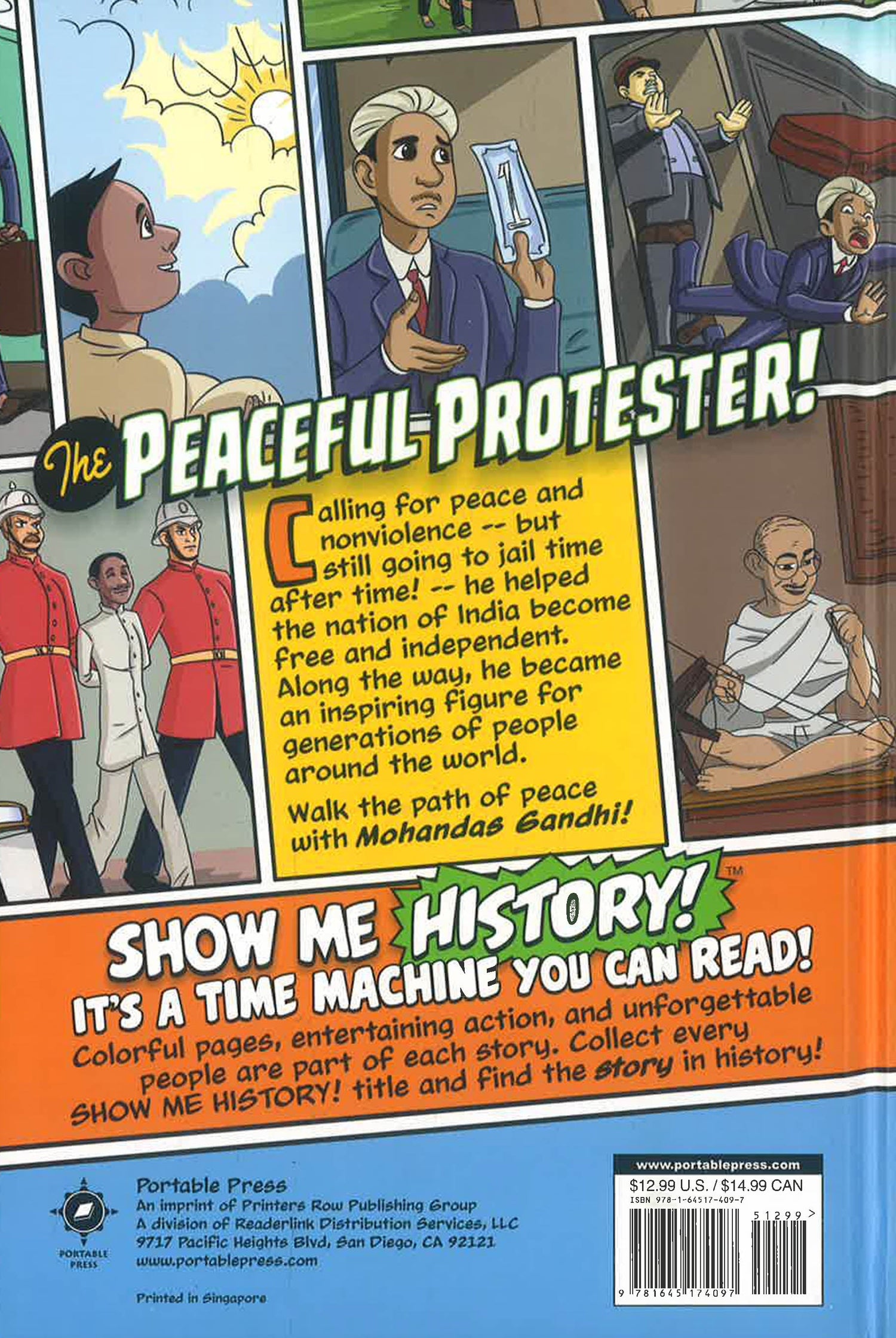 This biography of Mahatma Gandhi is presented in a graphic novel format, making it accessible and entertaining for readers across a range of age groups. After being named president of the Indian National Congress in 1921, Gandhi was instrumental in gaining India’s independence from Great Britain by using nonviolent resistance—and in the process he inspired generations of civil rights leaders with his example. Gandhi: The Peaceful Protester! recounts this humble leader’s story, from his youth in western India through his years as a lawyer and political activist who practiced kindness and empathy toward everyone.