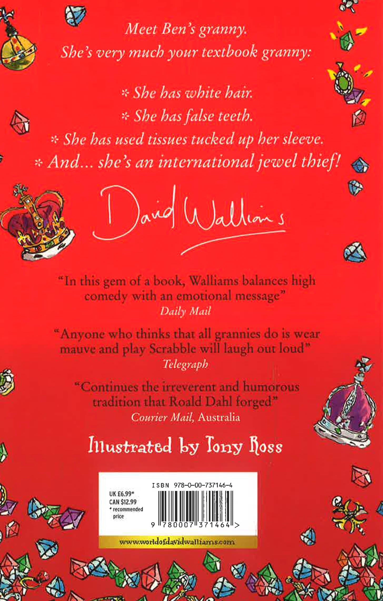 Another hilarious and moving novel from David Walliams, number one bestseller and fastest growing children's author in the country. A story of prejudice and acceptance, funny lists and silly words, this new book has all the hallmarks of David's previous bestsellers. Our hero Ben is bored beyond belief after he is made to stay at his grandma's house. She's the boringest grandma ever: all she wants to do is to play Scrabble, and eat cabbage soup. But there are two things Ben doesn't know about his grandma. 1) She was once an international jewel thief. 2) All her life, she has been plotting to steal the Crown Jewels, and now she needs Ben's help . . .