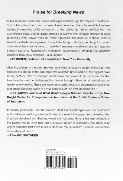 In Breaking News, Alan Rusbridger demonstrates how these decisive shifts have occurred, and what they mean for the future of democracy. In the twenty years he spent editing The Guardian, Rusbridger managed the transformation of the progressive British daily into the most visited serious English-language newspaper site in the world. He oversaw an extraordinary run of world-shaking scoops, including the exposure of phone hacking by London tabloids, the Wikileaks release of U.S.diplomatic cables, and later the revelation of Edward Snowden’s National Security Agency files. At the same time, Rusbridger helped The Guardian become a pioneer in Internet journalism, stressing free access and robust interactions with readers. Here, Rusbridger vividly observes the media’s transformation from close range while also offering a vital assessment of the risks and rewards of practicing journalism in a high-impact, high-stress time.
