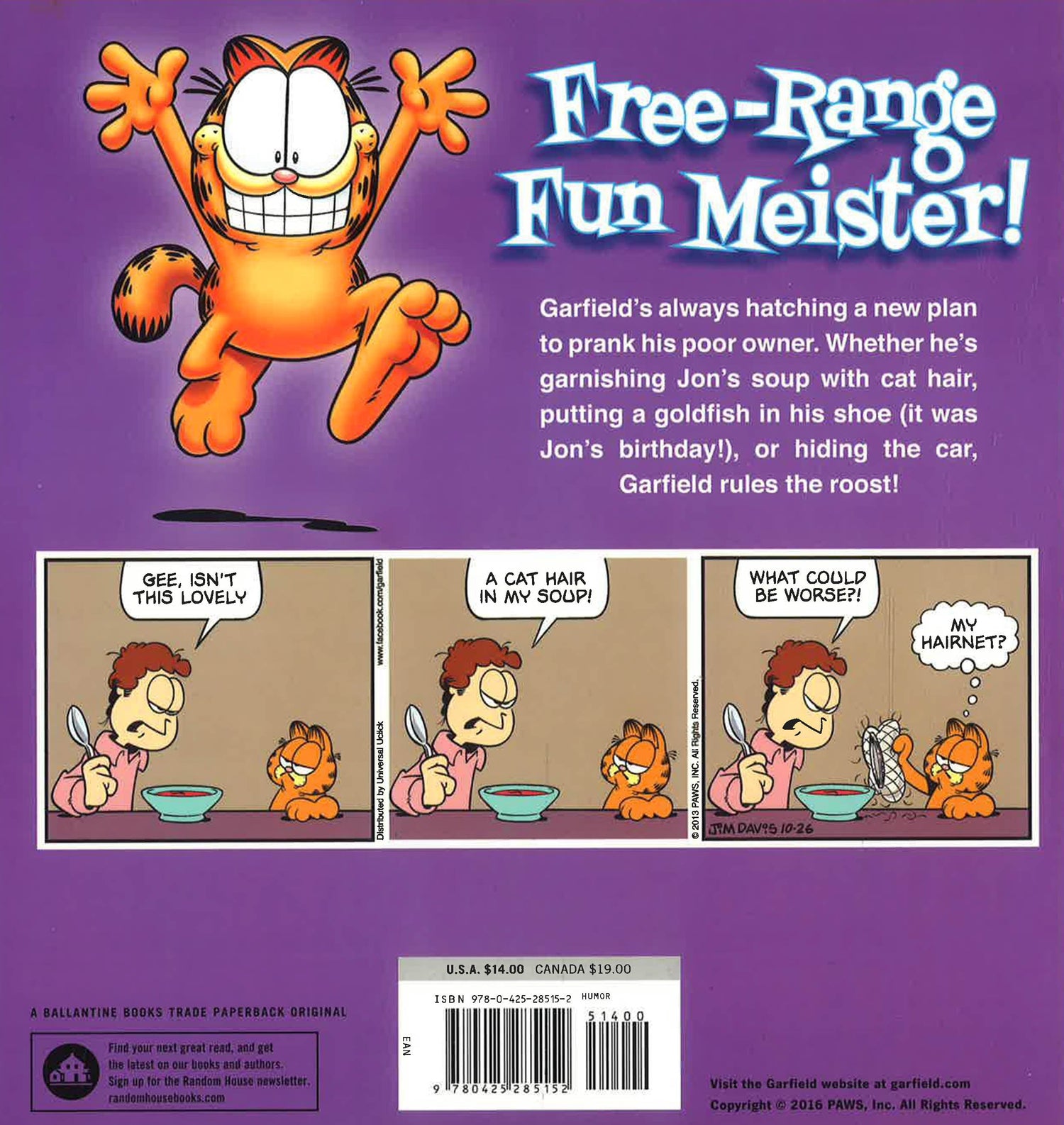 Free-Range Fun Meister! Garfield's always hatching a new plan to prank his poor owner. Whether he's garnishing Jon's soup with cat hair, putting a goldfish in his shoe (it was Jon's birthday!), or hiding the car, Garfield rules the roost! *This book may have remainder mark*