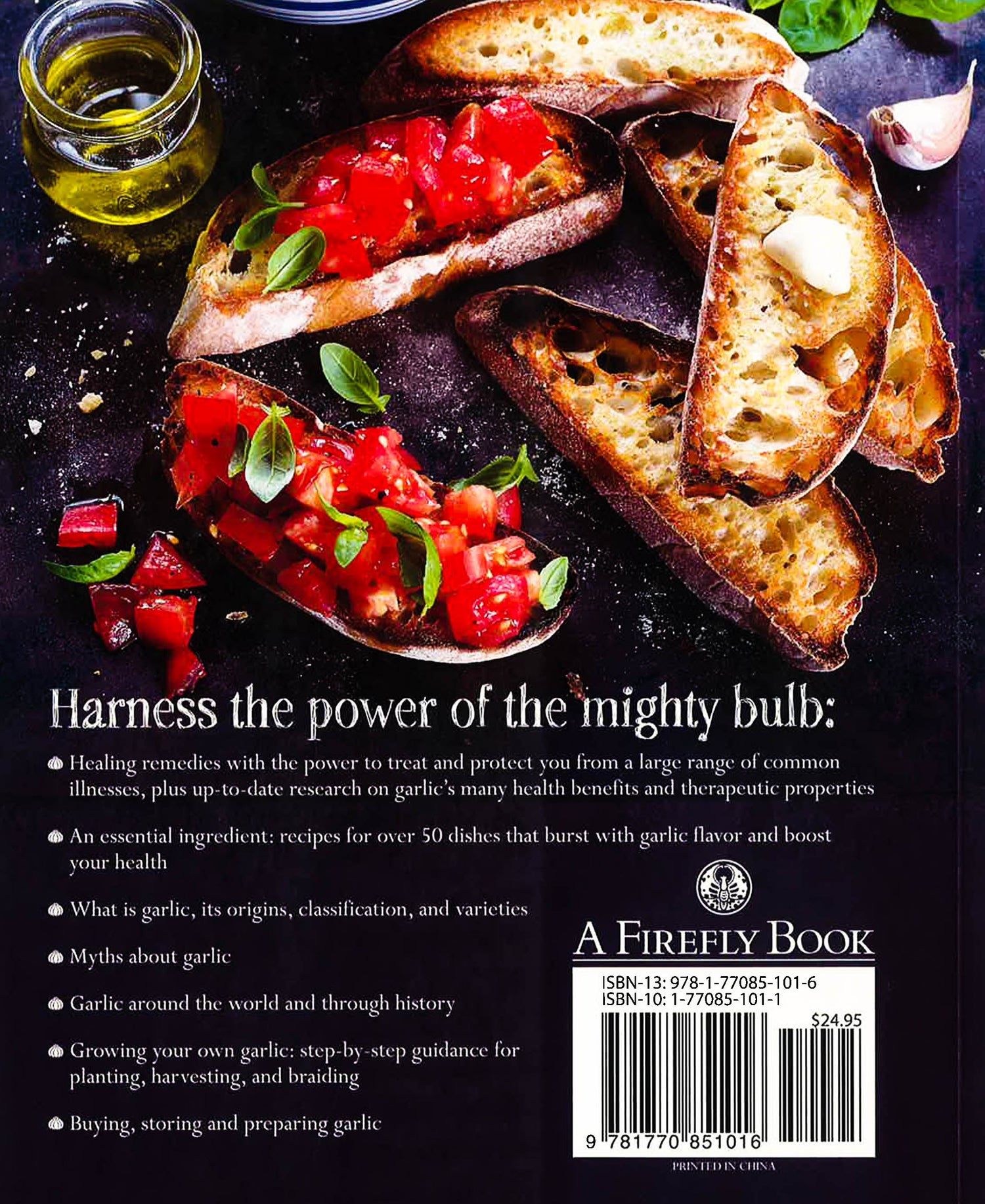 A guide to growing, preserving, cooking and healing with garlic. There is perhaps no better author for a book on garlic than one who grew up on a garlic farm and is also a formidable cook. Garlic: The Mighty Bulb is a colorfully illustrated treatise of praise and practical information about the "mighty bulb." The book covers the world of garlic and the many ways it can be used around the house and for improved health. The topics include: Garlic: an essential ingredient Buying, storing and preparing garlic Garlic around the world and through history What is garlic, its origins, classification and varieties Growing, harvesting and storing garlic Health and remedies Garlic myths. A chapter on garlic and modern medicine describes garlic's healing properties and describes conditions and treatments for cardiovascular disease and poor circulation, cancer, heavy metal toxicity, infections, skin problems, viruses and more. Fifty delicious recipes demonstrate how to use garlic in a variety of culinary treats, including appetizers, soups, side dishes, salads, entrees, dips, sauces, dressings and breads. Dishes from around the world include such garlic-rich standards as bruschetta, aioli, pesto, tzatziki, salsa, chicken with 40 cloves of garlic, and garlic and rosemary focaccia. Some of the innovative creations are: garlic, cumin and beet fritters; marinated minty garlic carrots; spicy purple sprouting broccoli; roasted butternut squash and garlic risotto; moroccan dressing; and caramelized garlic and tomato tarte tatin. Garlic: The Mighty Bulb is an important addition to any cookbook collection and an excellent resource for every enthusiastic cook.