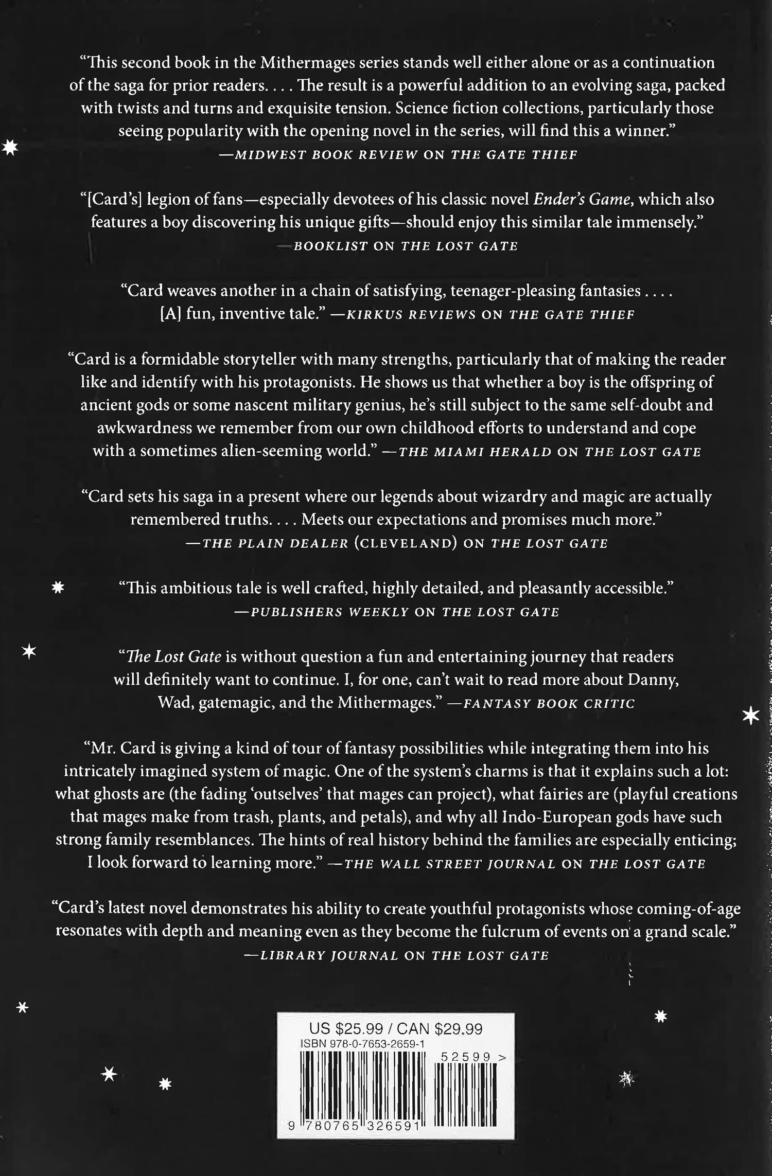 In Gatefather, the third installment in the Mithermages series, New York Times bestselling author Orson Scott Card continues his fantastic tale of the Mages of Westil who live in exile on Earth. Danny North is the first Gate Mage to be born on Earth in nearly 2000 years, or at least the first to survive to claim his power. Families of Westil in exile on Earth have had a treaty that required the death of any suspected Gate Mage. The wars between the Families had been terrible, until at last they realized it was their own survival in question. But a Gate Mage, one who could build a Great Gate back to Westil, would give his own Family a terrible advantage over all the others, and reignite the wars. So they all had to die. And if the Families didn't kill them, the Gate Thief would-that mysterious Mage who destroyed every Great Gate, and the Gate Mage, before it could be opened between Earth and Westil. But Danny survived. And Danny battled the Gate Thief, and won. What he didn't know at the time was that the Gate Thief had a very good reason for closing the Great Gates-and Danny has now fallen into the power of that great enemy of both Earth and Westil.