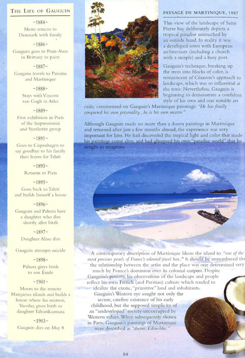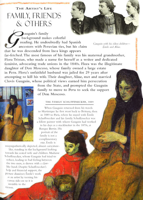 Documenting the life and creations of French painter Paul Gauguin, this account traces his experimental and varied styles, as seen in his many portraits of Tahitian women.