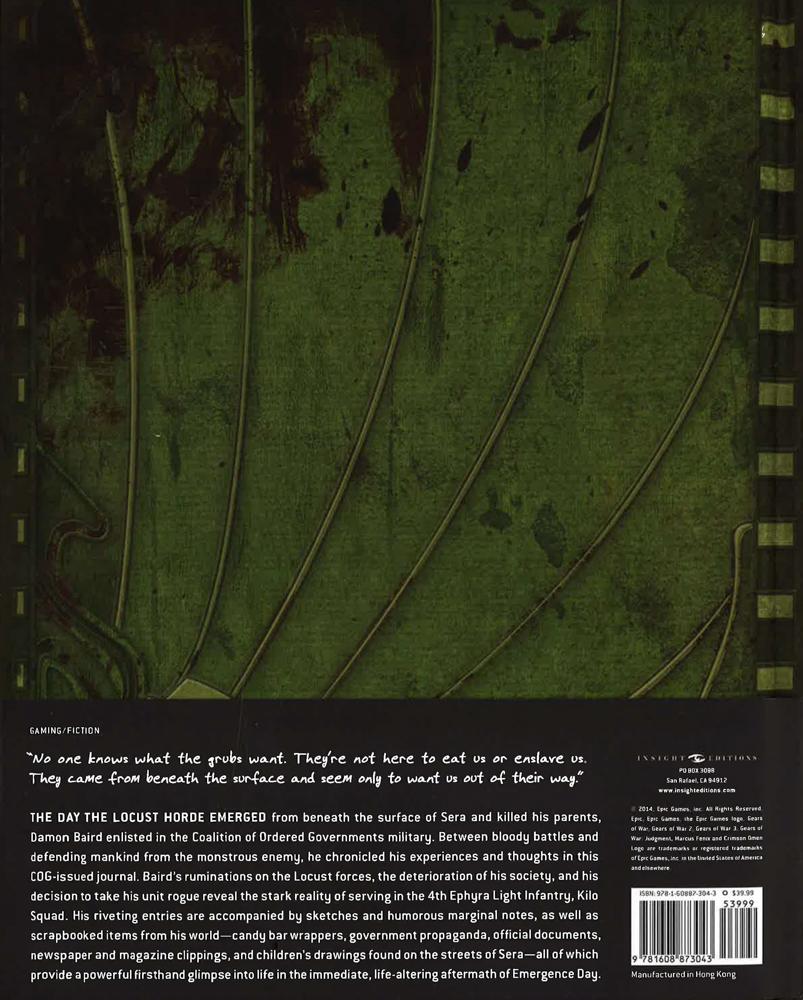 Written as a collection of notes in Damon Baird's journal, The Survivor's Log expands on declassified testimony and other facets of the game and serves as an in-universe artifact within the timeline of the series. This firsthand account chronicles the soldier's experience in a riveting and beautifully illustrated oral history -- the events he witnessed and the deterioration of COG society, his decision to take his unit rogue, and stories from the other members of his cohort. Divided into sections on COG society, Kilo Squad, and E-Day, the book underscores the perseverance of Baird and Kilo Squad and highlights key details on Locust forces. The Survivor's Log is a genuine treat for fans of the game that USA Today heralded as "an intense prequel," as well as "an exhilarating expansion and another worthwhile reason to rev up the chainsaws.
