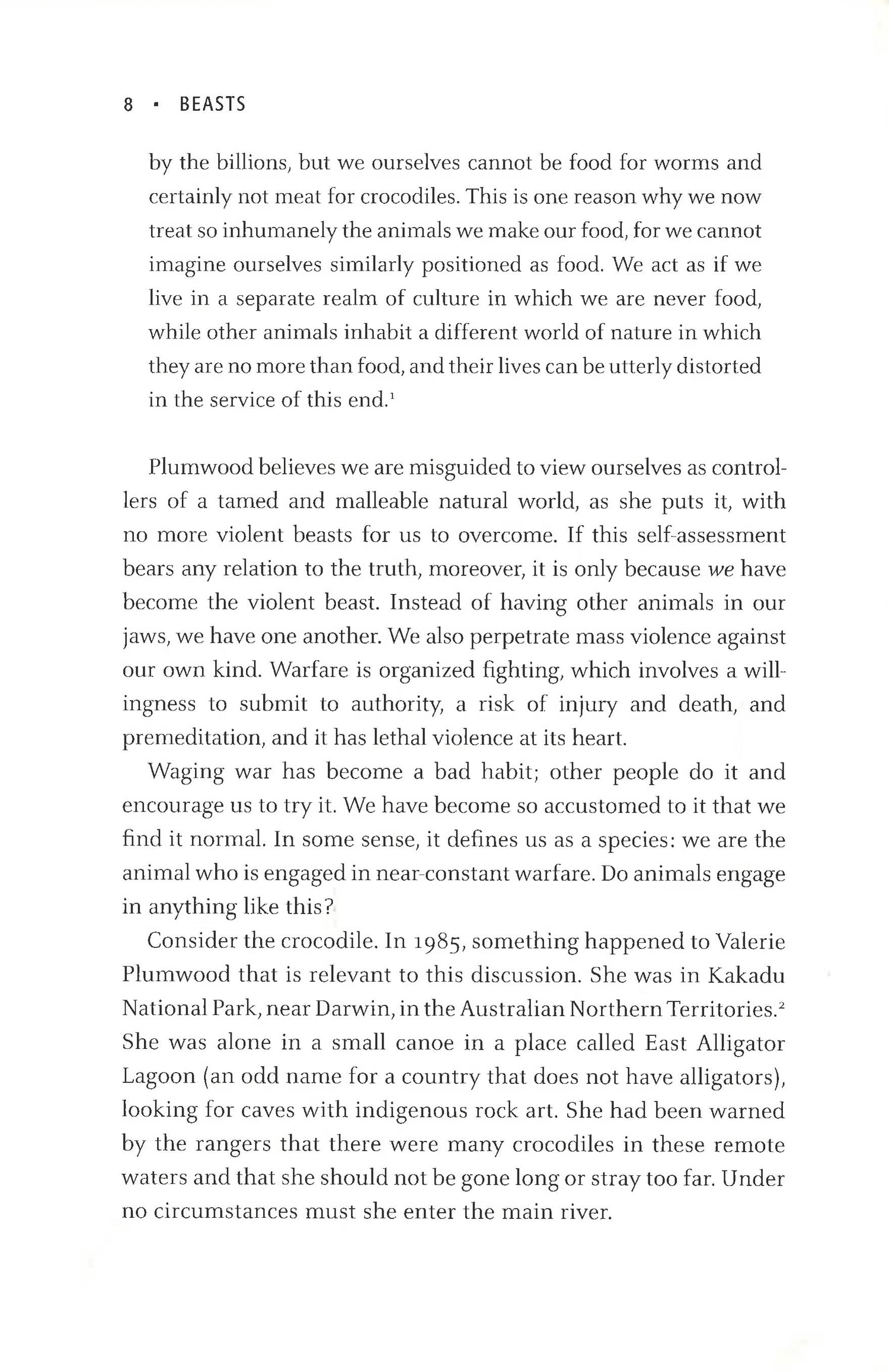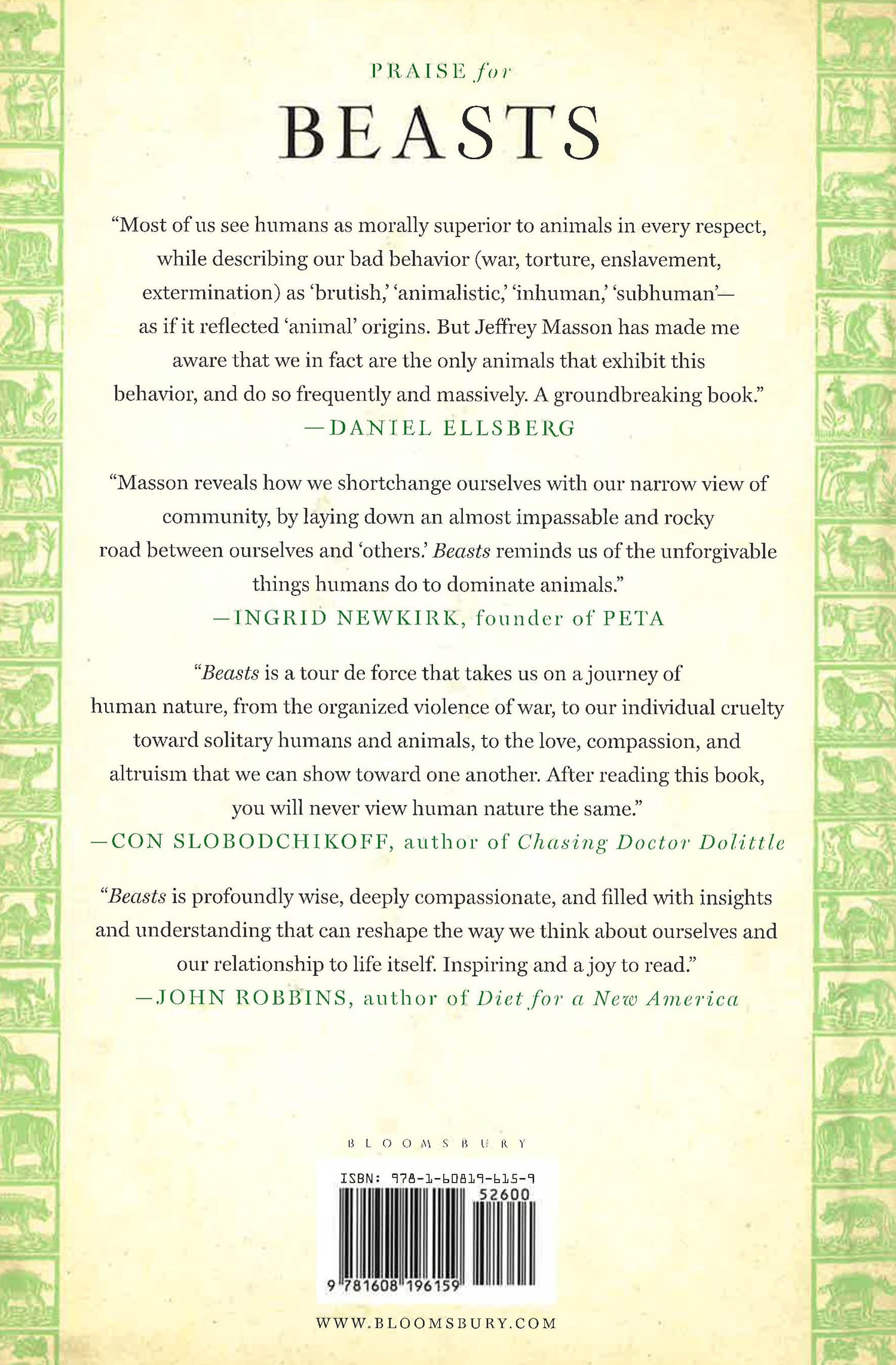 There are two supreme predators on the planet with the most complex brains in nature: humans and orcas. In the twentieth century alone, one of these animals killed 200 million members of its own species, the other has killed none. Jeffrey Masson's fascinating new book begins here: There is something different about us. In his previous bestsellers, Masson has showed that animals can teach us much about our own emotions - love (dogs), contentment (cats), grief (elephants), among others. But animals have much to teach us about negative emotions such as anger and aggression as well, and in unexpected ways. In Beasts he demonstrates that the violence we perceive in the "wild" is mostly a matter of projection. We link the basest human behavior to animals, to "beasts" ("he behaved no better than a beast"), and claim the high ground for our species. We are least human, we think, when we succumb to our primitive, animal ancestry. Nothing could be further from the truth.