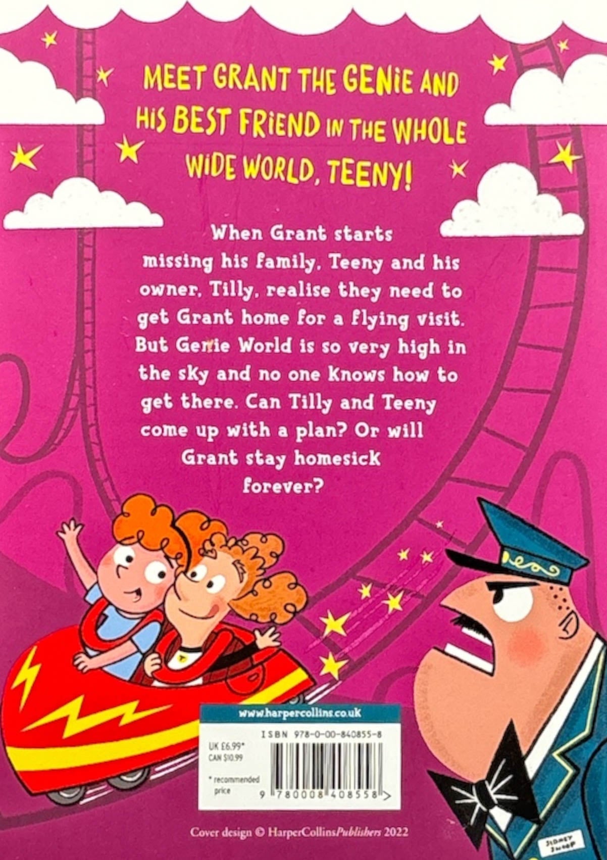 When Grant starts to miss his old life in Genie World, Teeny has a plan on how he can get the genie home for a flying visit. But as usual, where wishes are involved, nothing is quite that simple and they soon find out they’re in for a rollercoaster of a ride!