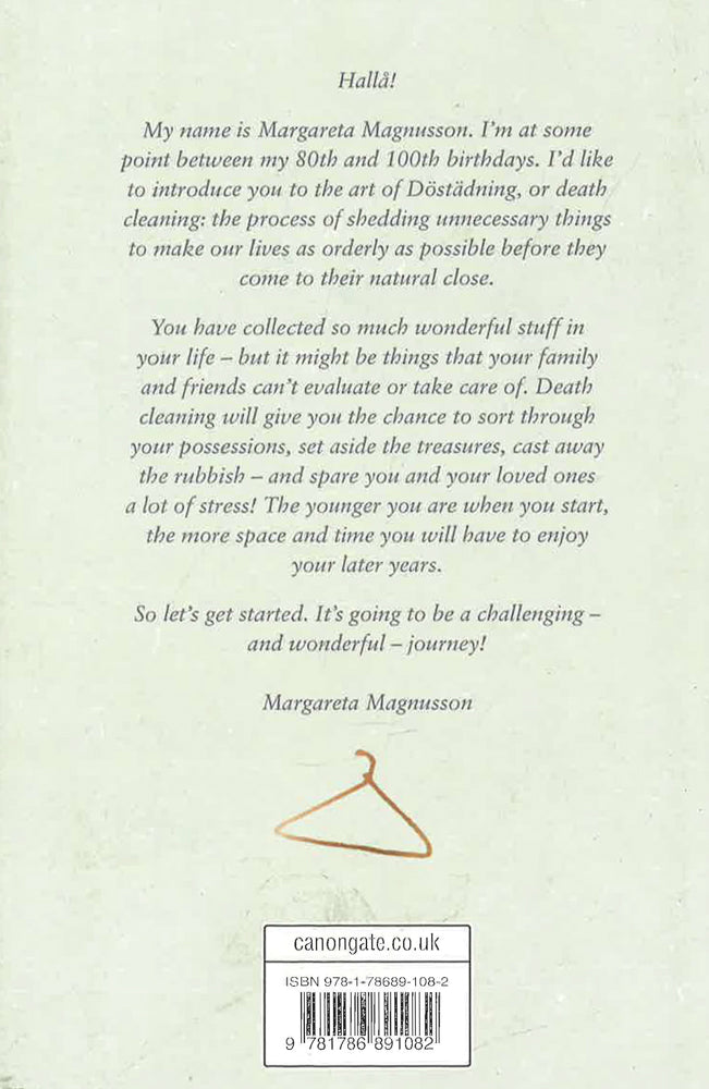 You embraced hygge and mastered konmari; now meet Doestadning, or death cleaning: the Scandinavian art of shedding unnecessary things to make our lives as joyful as possible, at any ageDoestadning, or the art of death cleaning, is a Swedish phenomenon by which the elderly and their families set their affairs in order. Whether it's sorting the family heirlooms from the junk, downsizing to a smaller place, or setting up a system to help you stop misplacing your keys, death cleaning gives us the chance to make the later years of our lives as comfortable and stress-free as possible. Whatever your age, Swedish death cleaning can be used to help you de-clutter your life, and take stock of what's important. Margareta Magnusson has death cleaned for herself and for many others. Radical and joyous, her guide is an invigorating, touching and surprising process that can help you or someone you love immeasurably, and offers the chance to celebrate and reflect on all the tiny joys that make up a long life along the way.