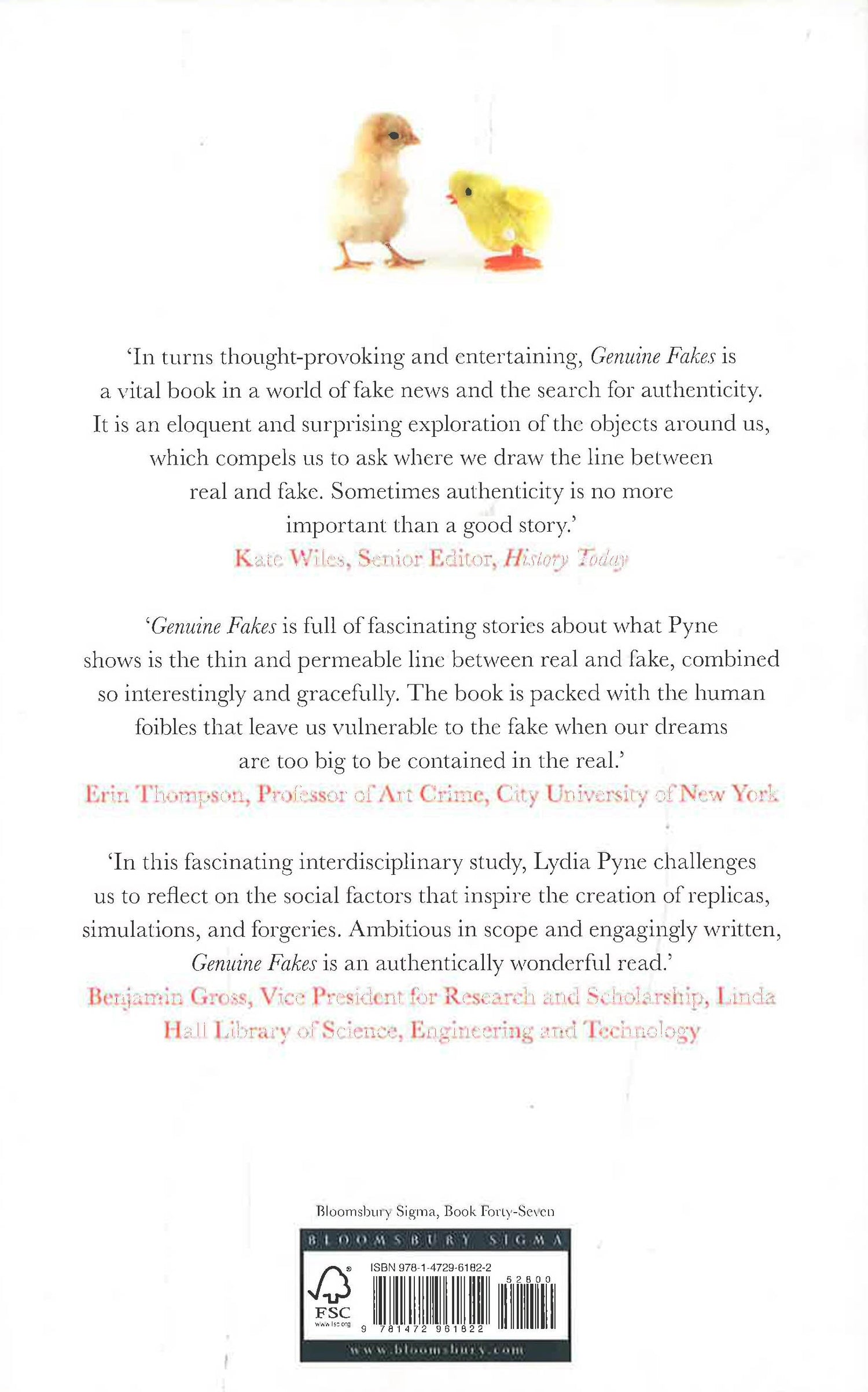 From stories of audacious forgeries to feats of technological innovation, historian Lydia Pyne explores how the authenticity of eight genuine fakes depends on their unique combinations of history, science and culture. The stories of art forgeries, fake fossils, nature documentaries, synthetic flavours, museum exhibits, Maya codices and Palaeolithic replicas show that genuine fakes are both complicated and change over time.