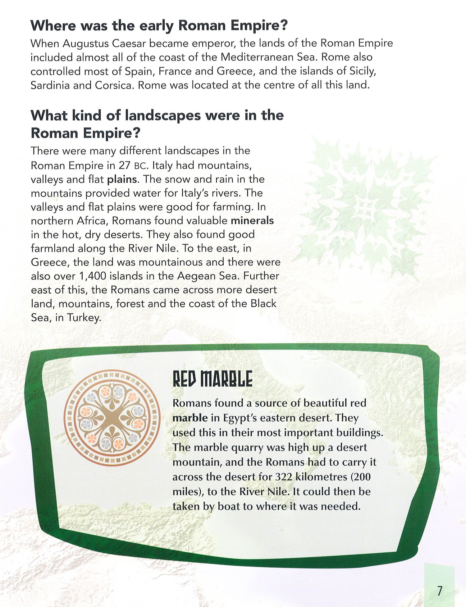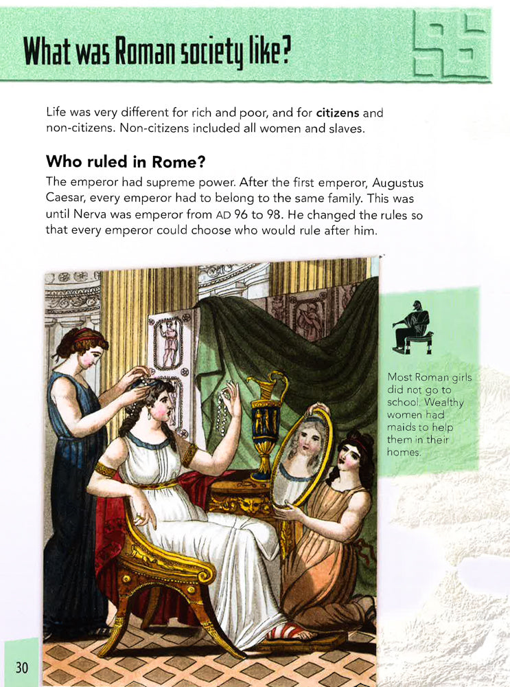 How did the River Nile shape Egyptian life? What is a shaduf and what was it used for? How did the Ancient Egyptians make papyrus paper? Geography Matters in Ancient Egypt looks at how the Egyptian Empire changed through time and gives fascinating insights into many different aspects of Egyptian life through its geography. Read about how the Egyptians made use of desert oases, how they found and used resources such as limestone and granite for building pyramids in desert areas, and how early Egyptian settlers who had decided to build in areas around the River Nile prevented their houses from flooding.