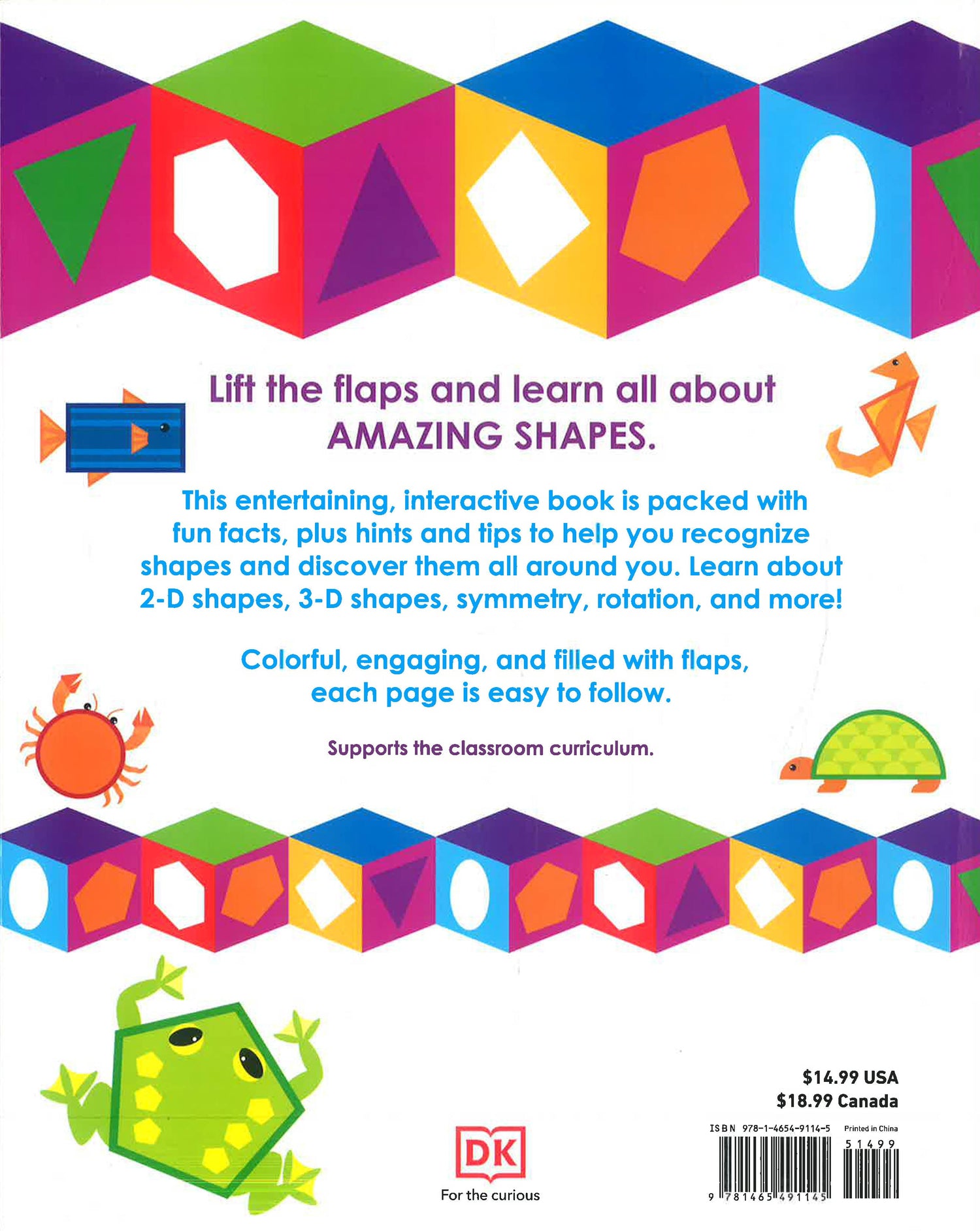 Geometry Genius helps kids identify and describe 2-D and 3-D shapes, compare and contrast features of regular and irregular shapes, discuss the size and orientation of shapes, understand nets, identify and count lines of symmetry, and more! It gets kids thinking about shapes in their world and not just on the pages of a math book. Quiz questions and fun activities are found sprinkled throughout the book, encouraging kids to lift the flaps and find out more. Learning shapes is a highly visual topic, and this book tackles the subject in a visually appealing, fully interactive, and playful way.