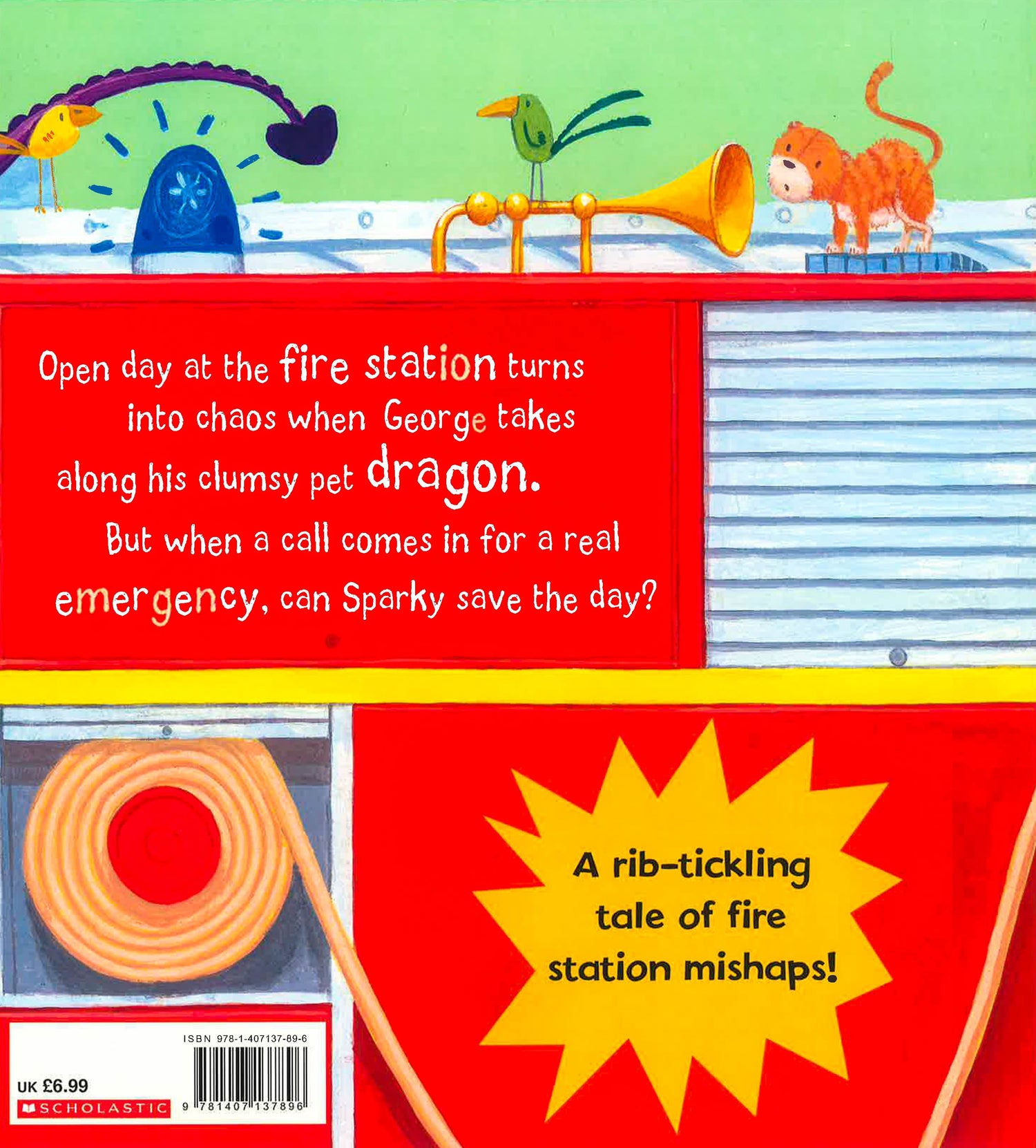 George and his pet dragon, Sparky, return for another adventure in this funny new picture book from the author of Aliens Love Underpants. Open Day at the fire station turns into chaos when George takes along Sparky. Clumsy as always, Sparky gets stuck sliding down the fireman's pole, sends a fire bucket flying, and steps on the hose during a firefighting demonstration. But when a call comes in for a real emergency Sparky is able to save the day - and a scared cat from a tree - by flying to Fluffy's rescue!