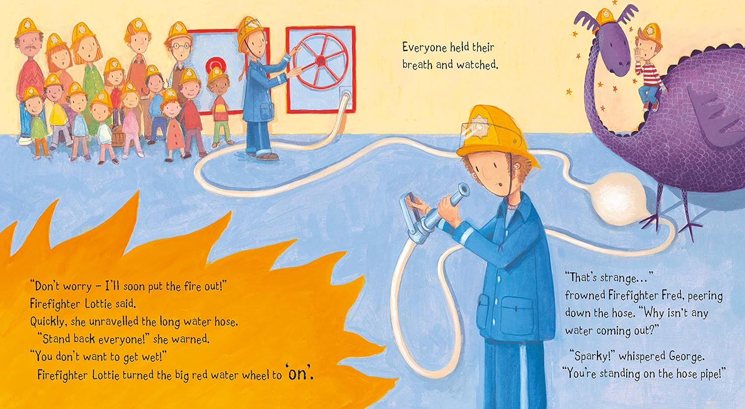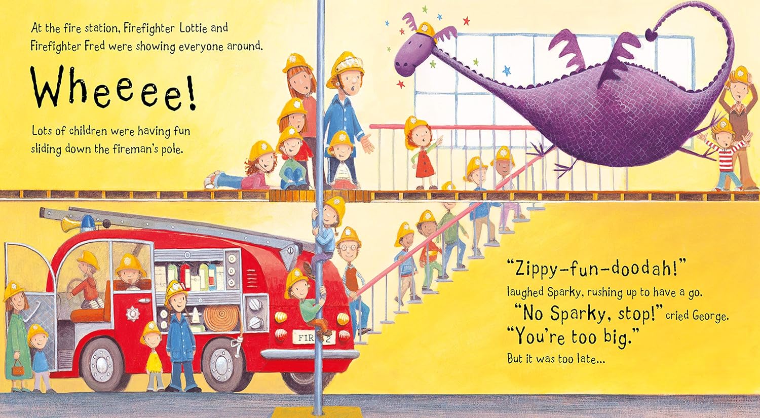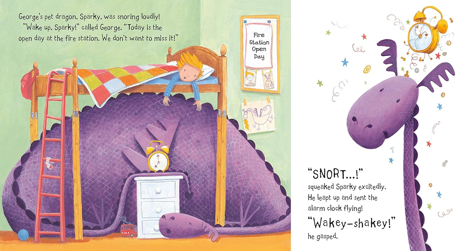 George and his pet dragon, Sparky, return for another adventure in this funny new picture book from the author of Aliens Love Underpants. Open Day at the fire station turns into chaos when George takes Sparky. But when a call comes in for a real emergency Sparky is able to save the day - and a scared cat from a tree - by flying to Fluffy's rescue!