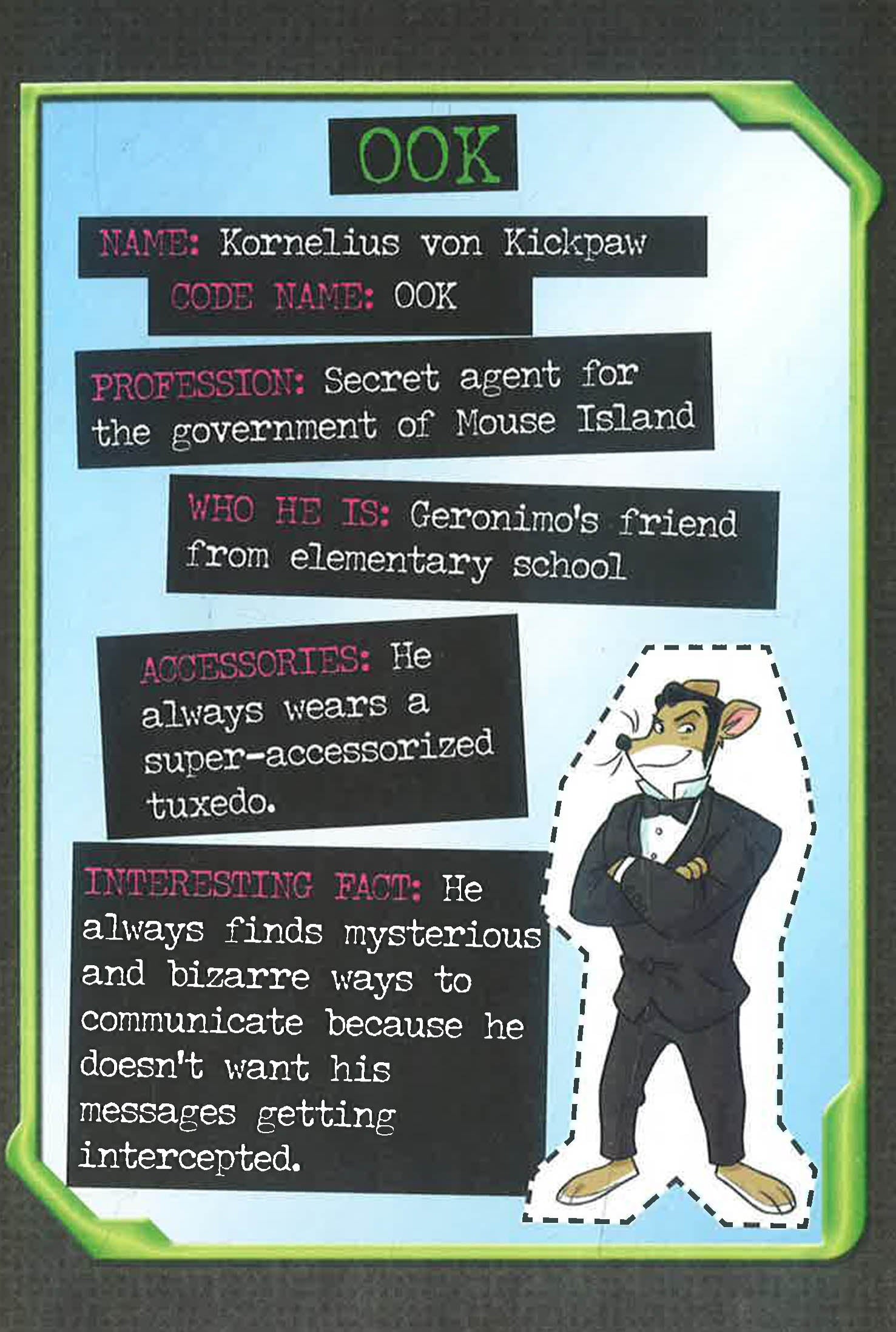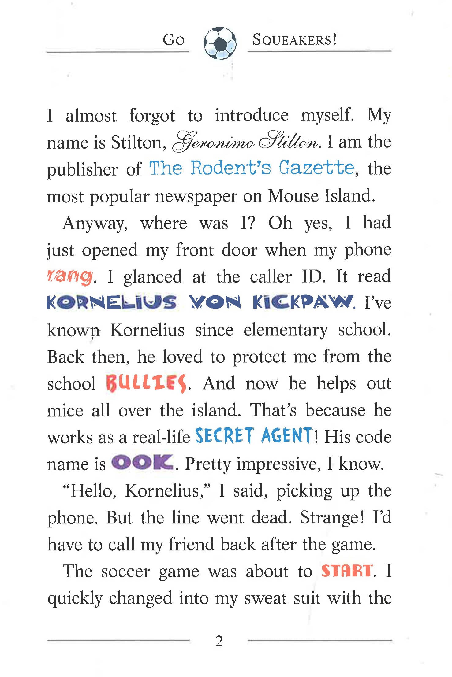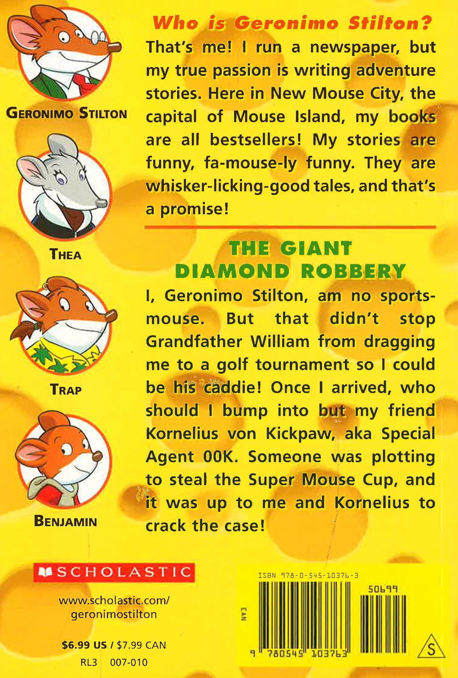 Who is Geronimo Stilton?That's me! I run a newspaper, but my true passion is writing tales of adventure. Here in New Mouse City, the capital of Mouse Island, my books are all bestsellers! My stories are full of fun - tastier than Swiss cheese and tangier than extra-sharp cheddar. They are whisker-licking-good stories and that's a promise!I, Geronimo Stilton, am no sportsmouse. But that didn't stop Grandfather William from dragging me to a golf tournament so I could be his caddie! Once I arrived who should I bump into but my friend Kornelius Von Kickpaw a.k.a. Special Agent 00K. Someone was plotting to steal the Super Mouse Cup and it was up to me and Kornelius to crack the case!