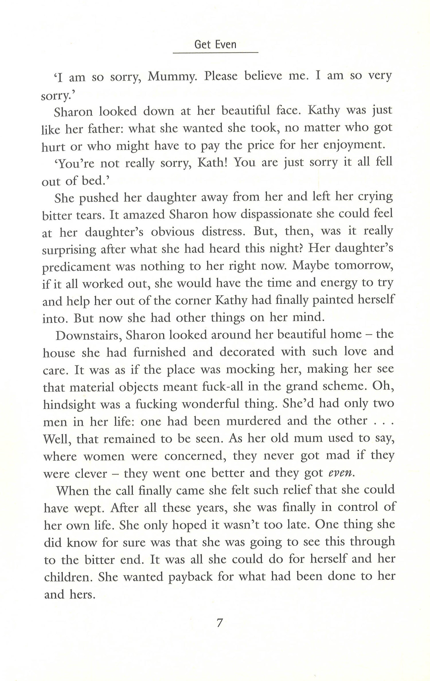 The twenty-second novel from Sunday Times No.1 bestseller, Martina Cole, author of DANGEROUS LADY, THE TAKE, THE GOOD LIFE and many more...Playing grown-ups, the future is theirs for the taking.Sharon Conway and Lenny Scott are childhood sweethearts. Everyone says they are too young, but nothing can keep them apart. Sharon doesn't question Lenny's business dealings and it isn't long before his reputation as a hard man destined for the top means they are living the good life with their sons.It leaves a stain on her heart for ever.But one night Lenny doesn't come home. It isn't the first time he has gone AWOL. But it is his last. He is found murdered - beaten to death in an act of brutality that shocks even the police. And Sharon never knows why.Old wounds will surface.Now, twenty years later, Sharon has found out the truth. Such a crime cannot go unpunished. Revenge is long overdue. The time has come to...GET EVEN