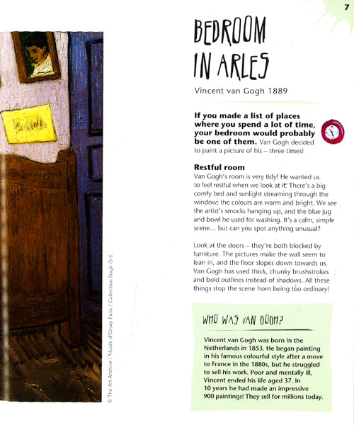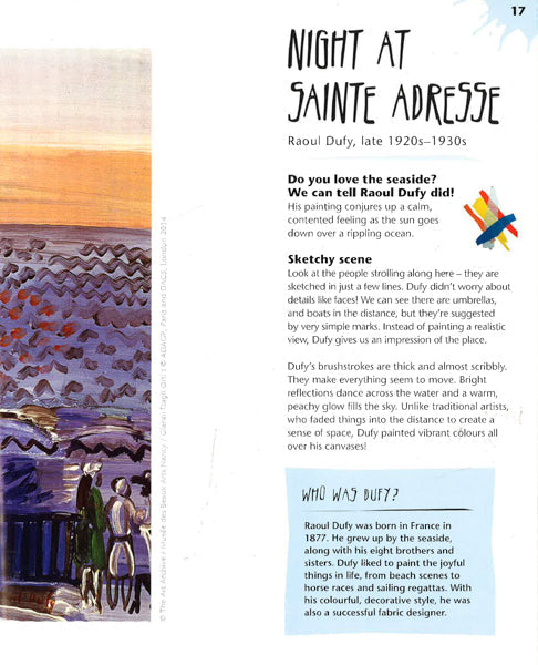 A gorgeous children's activity series that explores a wide range of artists' work while encouraging children to develop their own skills and techniques, Get into Art! is perfect for active young artists of all abilities. The book features twelve artworks, superbly reproduced, with information about the work and the artist. Lift the flap to reveal an art project inspired by the work.Get into Art! Places explores a fascinating array of places from snowy landscapes to mountains to busy street scenes, from artists as diverse as Van Gogh, Canaletto, Hokusai and Magritte. Each artwork is paired with an art activity for children to do themselves. Art projects are varied, intriguing, clearly explained and will act as a springboard for plenty of artistic experiments. Readers can combine their practical activity and creativity with the discovery of a wealth of fine art.