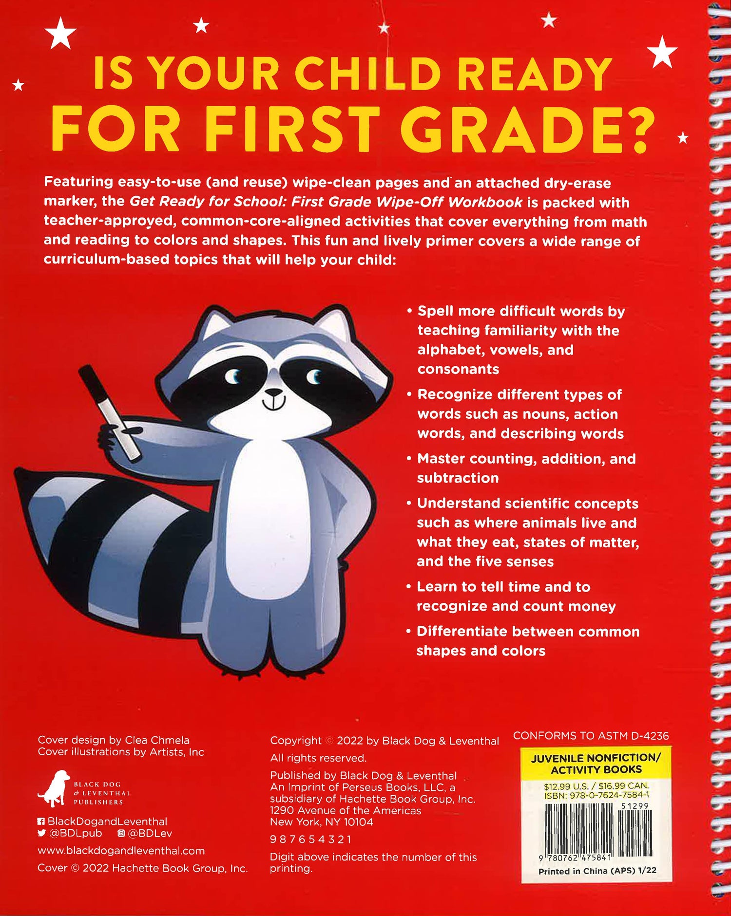 Time-tested and teacher-approved, Get Ready for School: First Grade Wipe-Off Workbook will help your child develop a love for learning while enhancing their essential motor and problem-solving skills. Colorful workbook pages combine a sense of fun with a feeling of accomplishment, and parents will love that this spiral-bound workbook reflects current academic standards and aligns with the Common Core.
