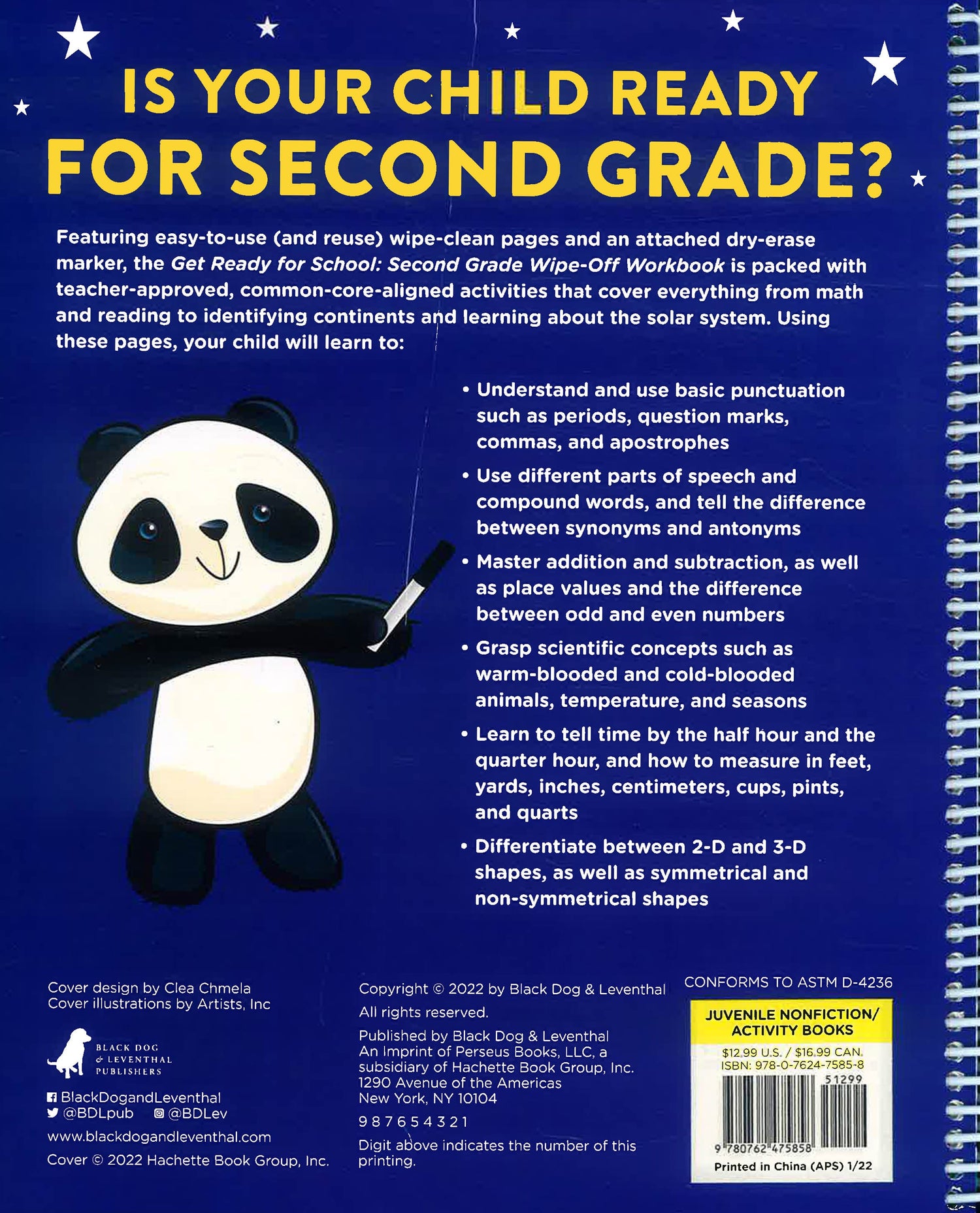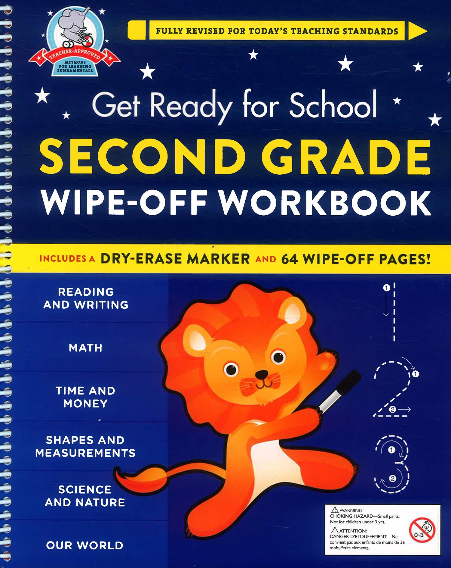 Featuring easy-to-use, wipe-clean pages and an attached dry erase marker, the Get Ready for School: Second Grade Wipe-Off Workbook is packed with teacher-approved, common-core aligned activities that cover everything from math and reading to taking measurements and telling time. This fun and lively primer is a must-have to help your second grader get ready for school.
