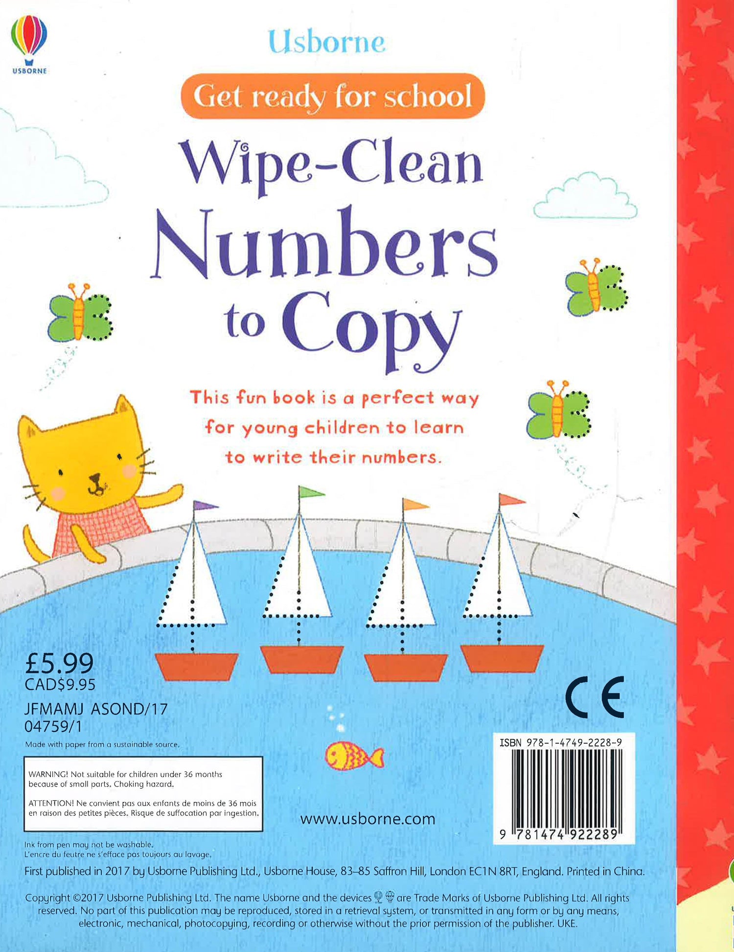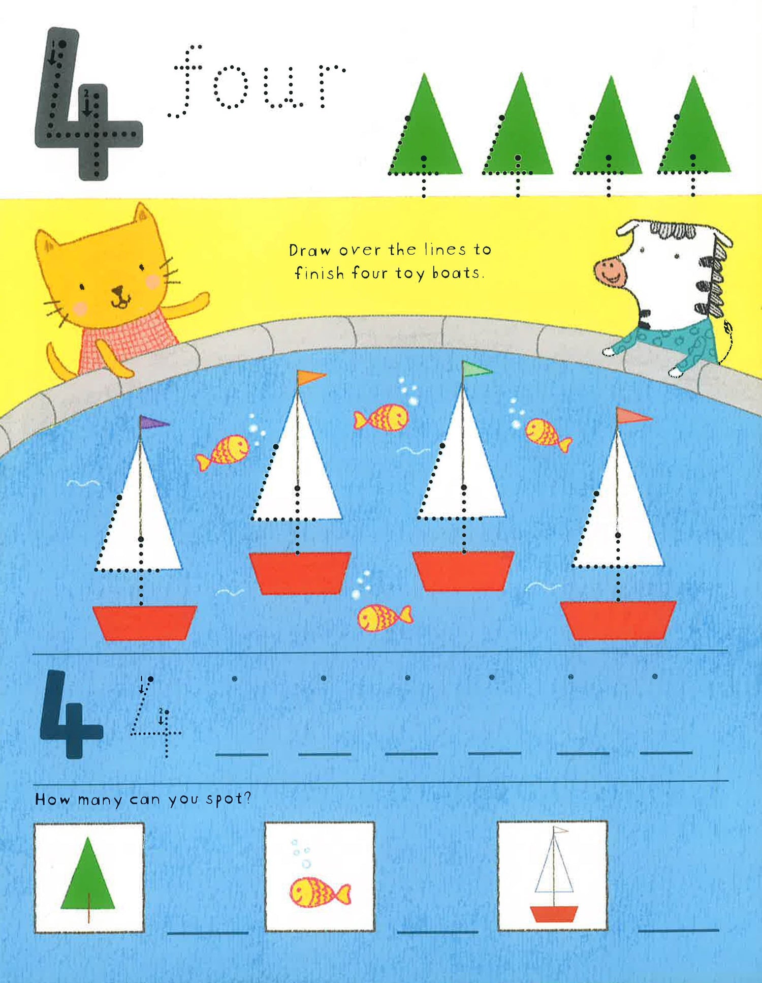 This colourful wipe-clean book is full of friendly animals learning to write numbers. Young children will enjoy drawing over the outlines of 5 mice doing some digging, boats shaped like the number 4 and more, learning key counting, ordering and pen control skills along the way. The wipe-clean pages mean this book can be enjoyed again and again.
