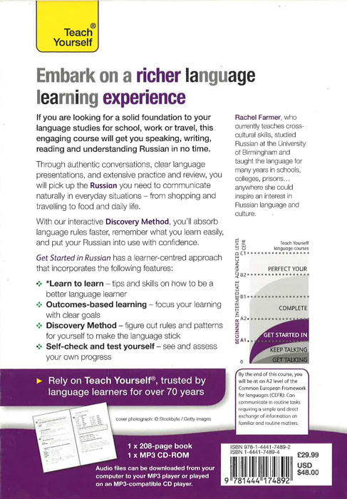 Get Started in Russian is for absolute and false beginners of Russian. Clear and simple explanations make the course appropriate and accessible to anyone learning Russian. There are extensive illustrations to support the learner working on his or her own. This course is also ideal to use with one-to-one tutoring and as a classroom course.