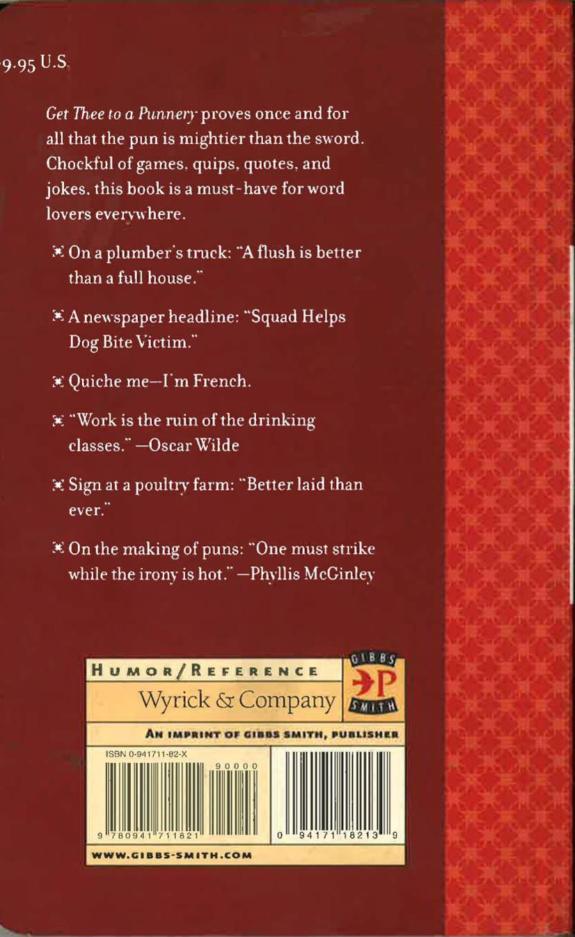 Get Thee to a Punnery proves that the pun is mightier than the sword . . . and here are sidesplitting puns of every color, stripe and persuasion to suit every whim. Even if you don't know that your humerus is your funny bone, this is the book for you.