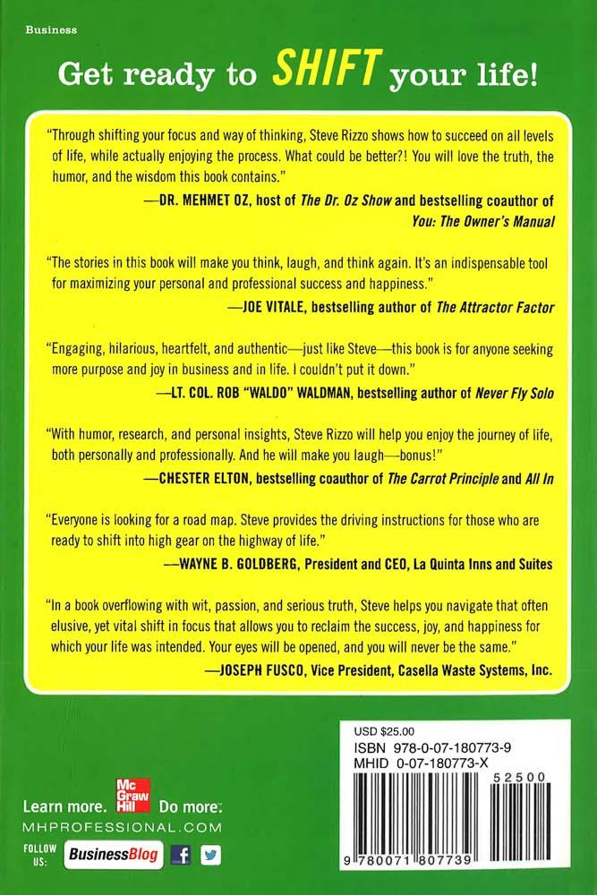 Get ready to SHIFT your life!"Through shifting your focus and way of thinking, Steve Rizzo shows how to succeed on all levels of life, while actually enjoying the process. What could be better?! You will love the truth, the humor, and the wisdom this book contains." -- Dr. Mehmet Oz, host of The Dr. Oz Show and bestselling coauthor of You: The Owner's Manual"I'm positive you will love this book!" -- Jeffrey Gitomer, bestselling author of the Little Red Book of Selling"The stories in this book will make you think, laugh, and think again. It's an indispensable tool for maximizing your personal and professional success and happiness." -- Joe Vitale, bestselling author of The Attractor Factor"Engaging, hilarious, heartfelt, and authentic-just like Steve--this book is for anyone seeking more purpose and joy in business and in life. I couldn't put it down." -- Lt. Col. Rob "Waldo" Waldman, bestselling author of Never Fly Solo"With humor, research, and personal insights, Steve Rizzo will help you enjoy the journey of life, both personally and professionally. And he will make you laugh--bonus!" -- Chester Elton, bestselling coauthor of The Carrot Principle and All In"Everyone is looking for a road map. Steve provides the driving instructions for those who are ready to shift into high gear on the highway of life." -- Wayne B. Goldberg, President and CEO, La Quinta Inns and Suites"In a book overflowing with wit, passion, and serious truth, Steve helps you navigate that often elusive, yet vital shift in focus that allows you to reclaim the success, joy, and happiness for which your life was intended. Your eyes will be opened, and you will never be the same." -- Joseph Fusco, Vice President, Casella Waste Systems, Inc. LAUGH YOUR WAY TO SUCCESS . . .Who says you have to "get serious" to get everythingyou want out of life? According to Steve Rizzo, TheAttitude Adjuster, you simply need to shift your attitudeto get the ball rolling, both at work and in your personal life. In his funny and moving motivational guide, Rizzo shares the life-changing secrets that helped him confront his fears and shift from a promising career as a stand-up comic to his incredible success as a public speaker. Packed with humor, charm, and mind-altering insights--no,not that kind!--Rizzo's unique approach will show you how to: Find the humor in every situationTurn negatives into positives--every single dayMake your workplace the best place to succeedStop being a full-time resident of the Negative ZoneFace your fears and get on with your lifeMake happiness a choice--and have fun doing it!