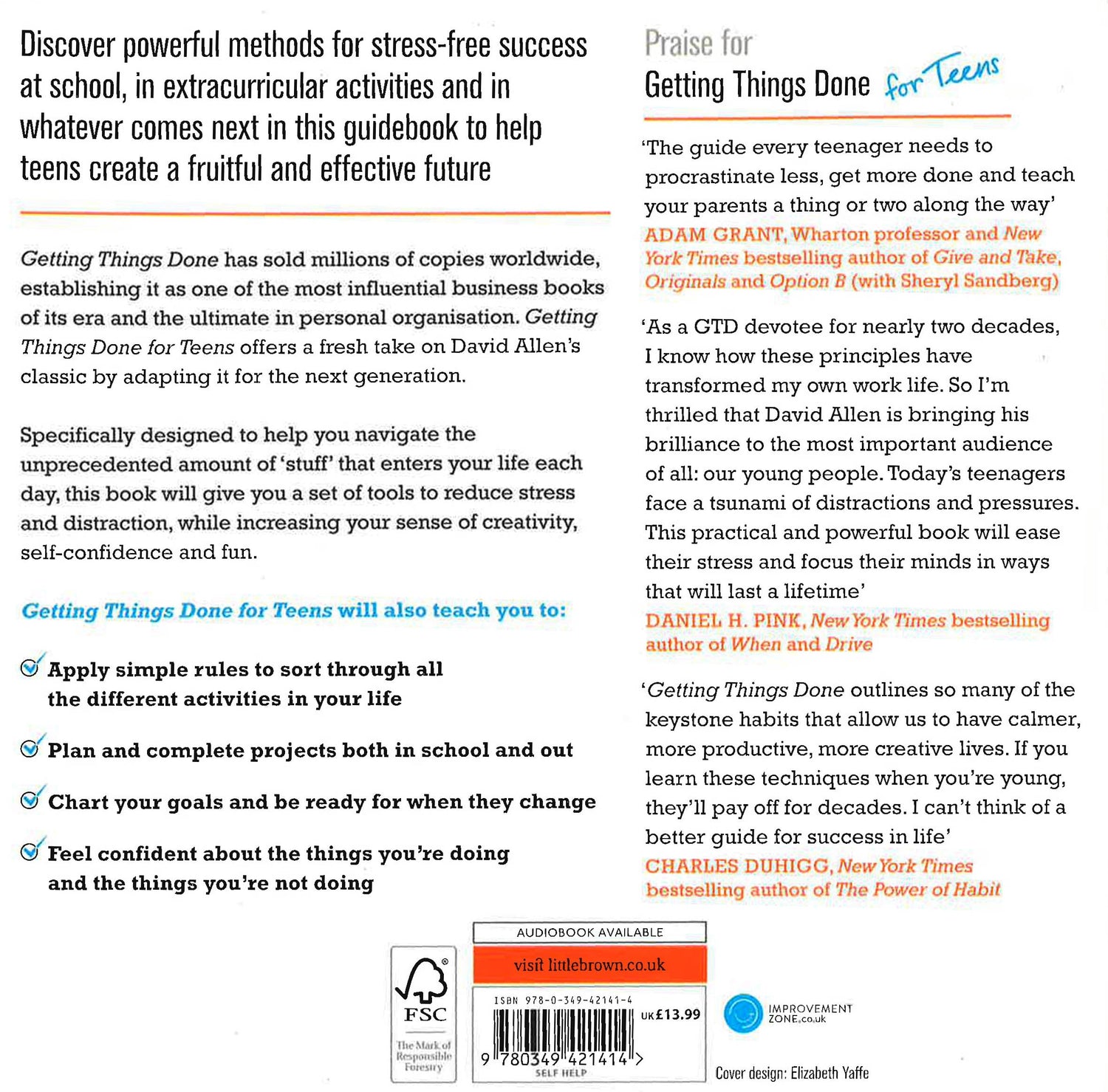 As a GTD devotee for nearly two decades, I know how these principles have transformed my own work life. So I'm thrilled that David Allen is bringing his brilliance to the most important audience of all: Our young people. Today's teenagers face a tsunami of distractions and pressures. This practical and powerful book will ease their stress and focus their minds in ways that will last a lifetime' - Daniel H. Pink, New York Times bestselling author of When and Drive