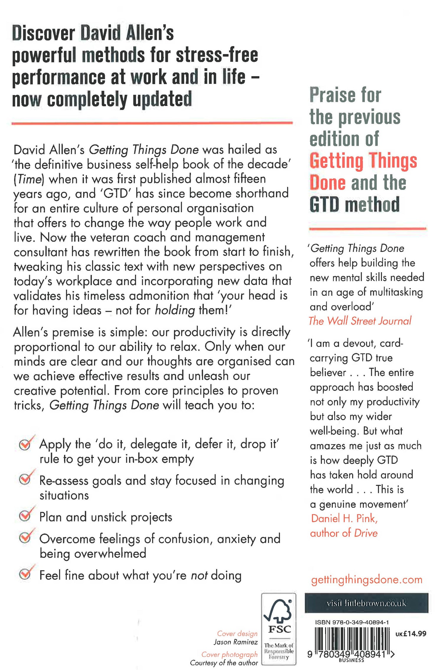 Since it was first published in David Allen's Getting Things Done has become one of the most influential business titles of its era, and the book on personal organisation. 'GTD' has become shorthand for an entire way of approaching the professional and personal tasks everyone faces in life, and has spawned an entire culture of websites, organisational tools, seminars, and offshoots. For this revised and updated edition, David Allen has rewritten the book from start to finish, tweaking his classic text with new tools and technologies, and adding material that will make the book evergreen for the coming decades. Also new is a glossary of GTD terms; The GTD Path of Mastership - a description of what Allen has learned and is now teaching regarding the lifelong craft of integrating these practices, to the end-game of the capability of dealing with anything in life, by getting control and focus; and a section on the cognitive science research that validates GTD principles. The new edition of Getting Things Done will be welcomed not only by the hundreds of thousands of existing fans but will be embraced by an entire new generation eager to adopt its proven principles.
