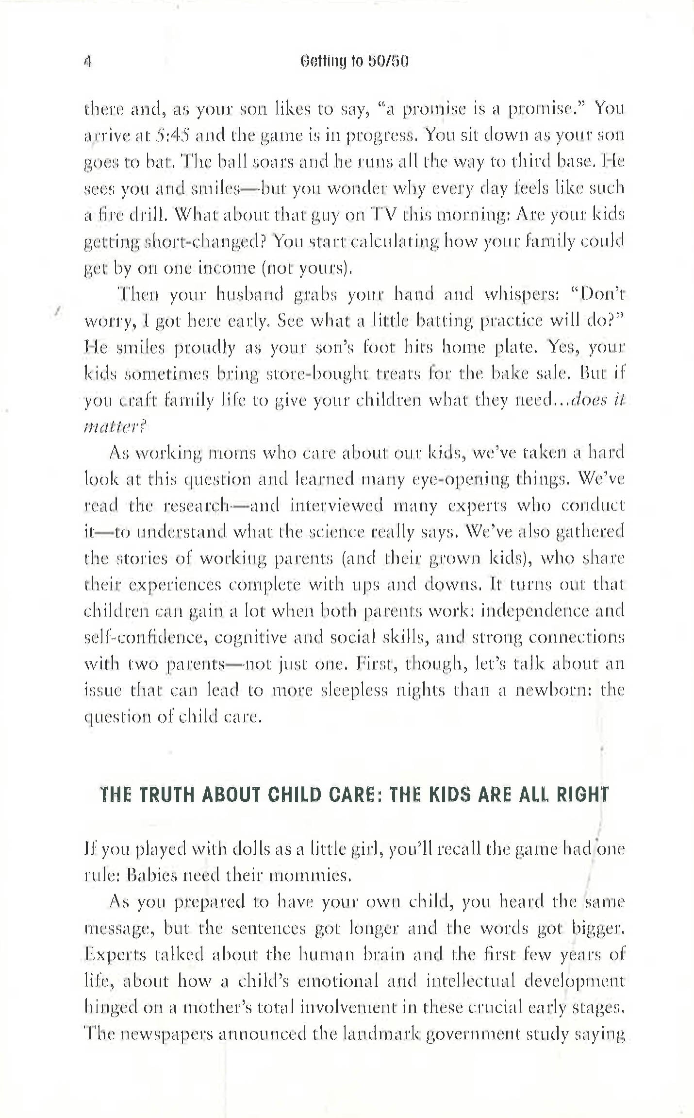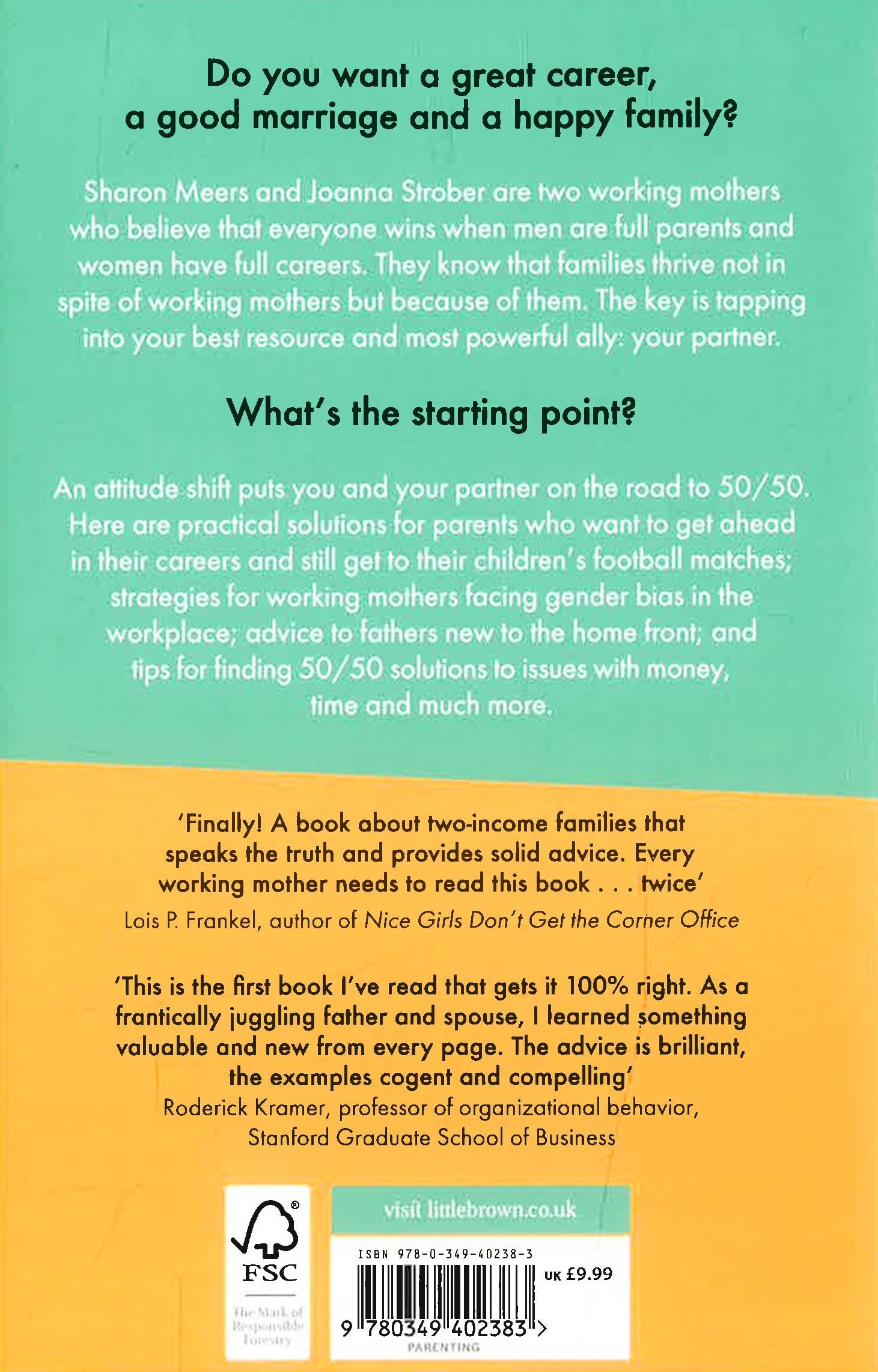 With a foreword by Sheryl SandbergSharon Meers and Joanna Strober are professionals, wives, and mothers with five young children between them who believe that everyone wins when men are full parents and women have full careers. They know that families thrive not in spite of working mothers but because of them. The key is tapping into your best resource and most powerful ally: your spouse. What's the starting point? An attitude shift that puts you and your partner on the road to 50/50. Here are real world solutions for parents who want to get ahead in their careers and still get to their children's football matches and school plays; strategies for working mothers facing gender bias in the workplace; advice to fathers new to the home front; and tips for finding 50/50 solutions to deal with issues of money, time, and much more. From "baby boot camp" for new dads to exactly what to say when negotiating leave with the boss, this savvy book offers confidence through fresh ideas for today's families. Getting to 50/50 presents a compelling case making it possible for parents to mix professional achievement and a family life that can strengthen their families.