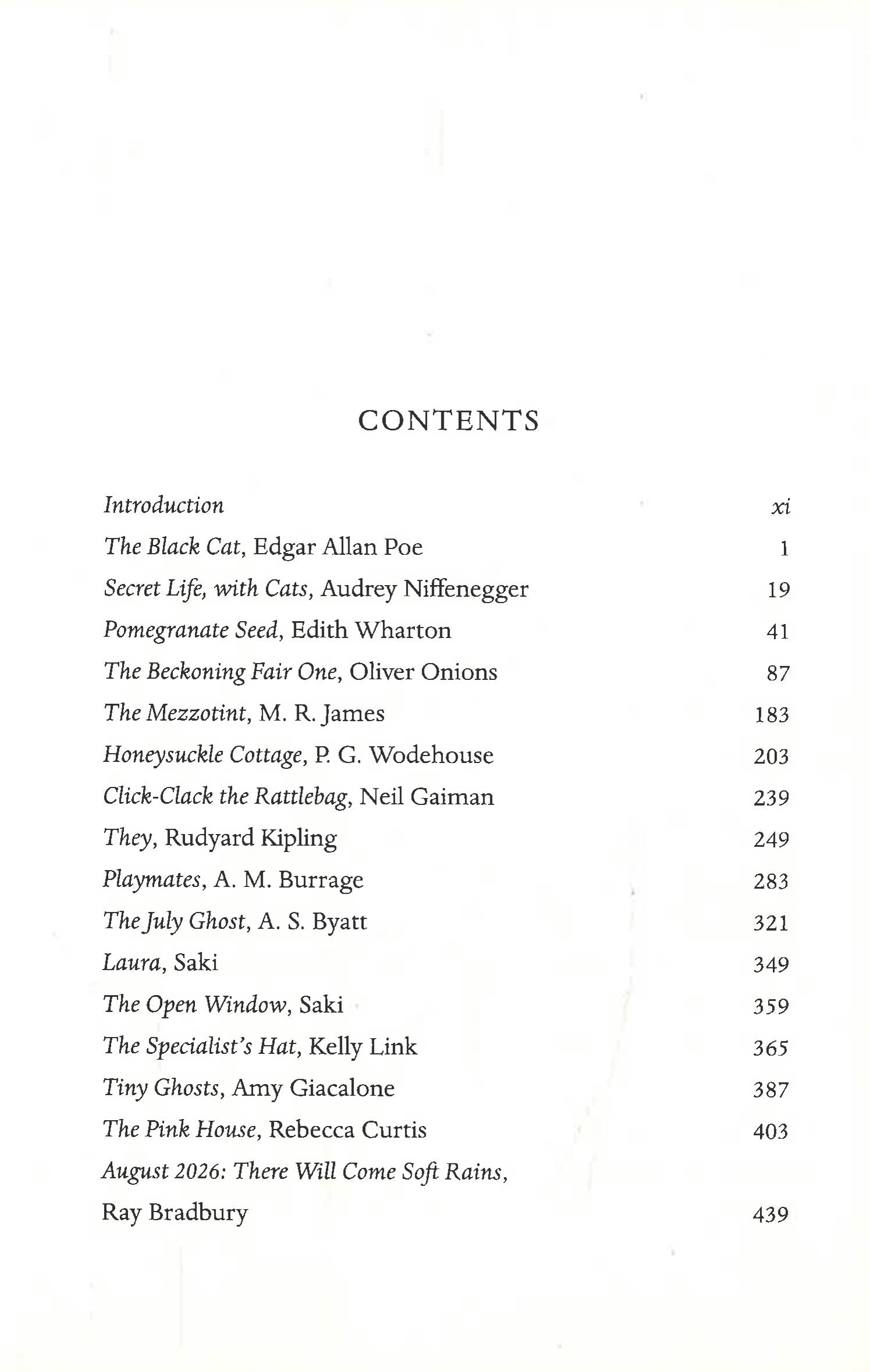 From Edgar Allen Poe to Kelly Link, MR James to Neil Gaiman, HH Munro to Audrey Niffenegger herself, Ghostly spans the whole history of the ghost story genre from gothic horror to the modern era. Each story is introduced by Audrey Niffenegger, with short original commentary and background on why she chose to include it. Also included is Niffenegger’s own story, “A Secret Life with Cats.”