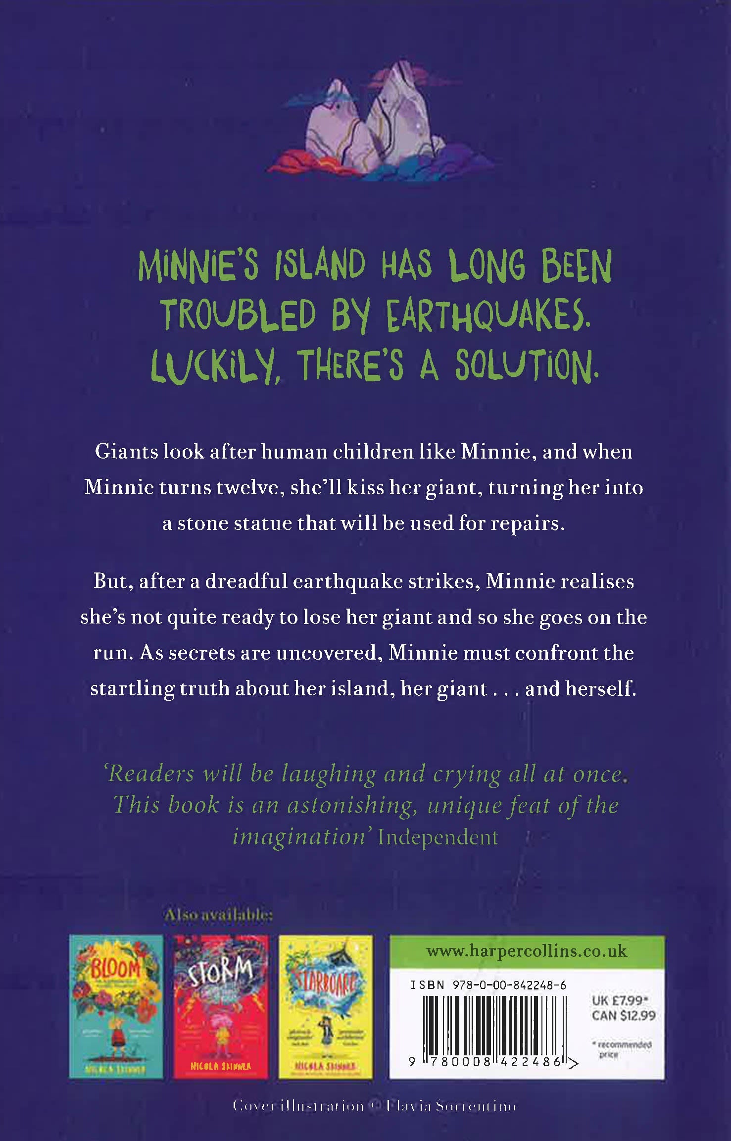 But when a dreadful earthquake strikes, Minnie realises she’s not quite ready to say goodbye to her giant – not forever – not yet. So Minnie goes on the run, betraying her parents and everyone she knows. The secrets she uncovers on her journey threaten to pull everything down: and so begins a desperate race against time in which she will confront the truth about her island, her giant . . . and ultimately herself.