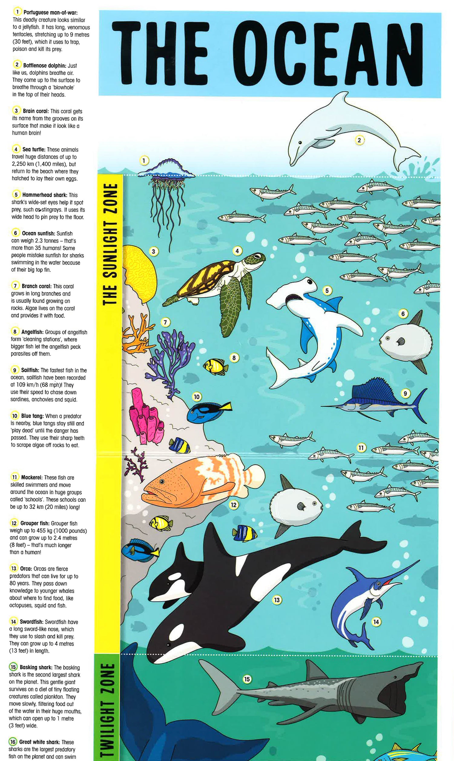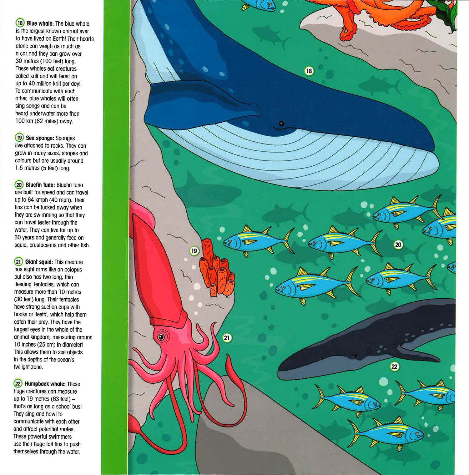 Learn about one of nature's most exciting habitats with this giant fold-out colouring scene. Colour your way from the warm sunlight zone to the cold, dark depths of the ocean floor, then turn over to discover amazing facts about the mysterious creatures that lurk beneath the waves.