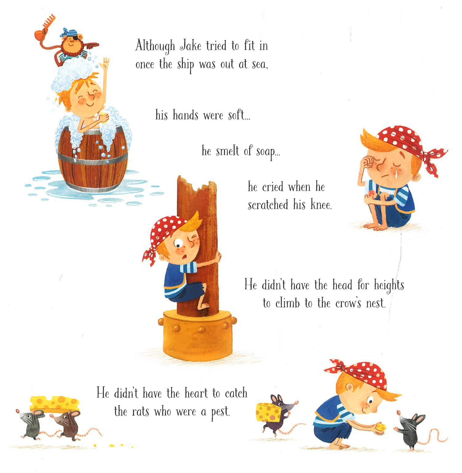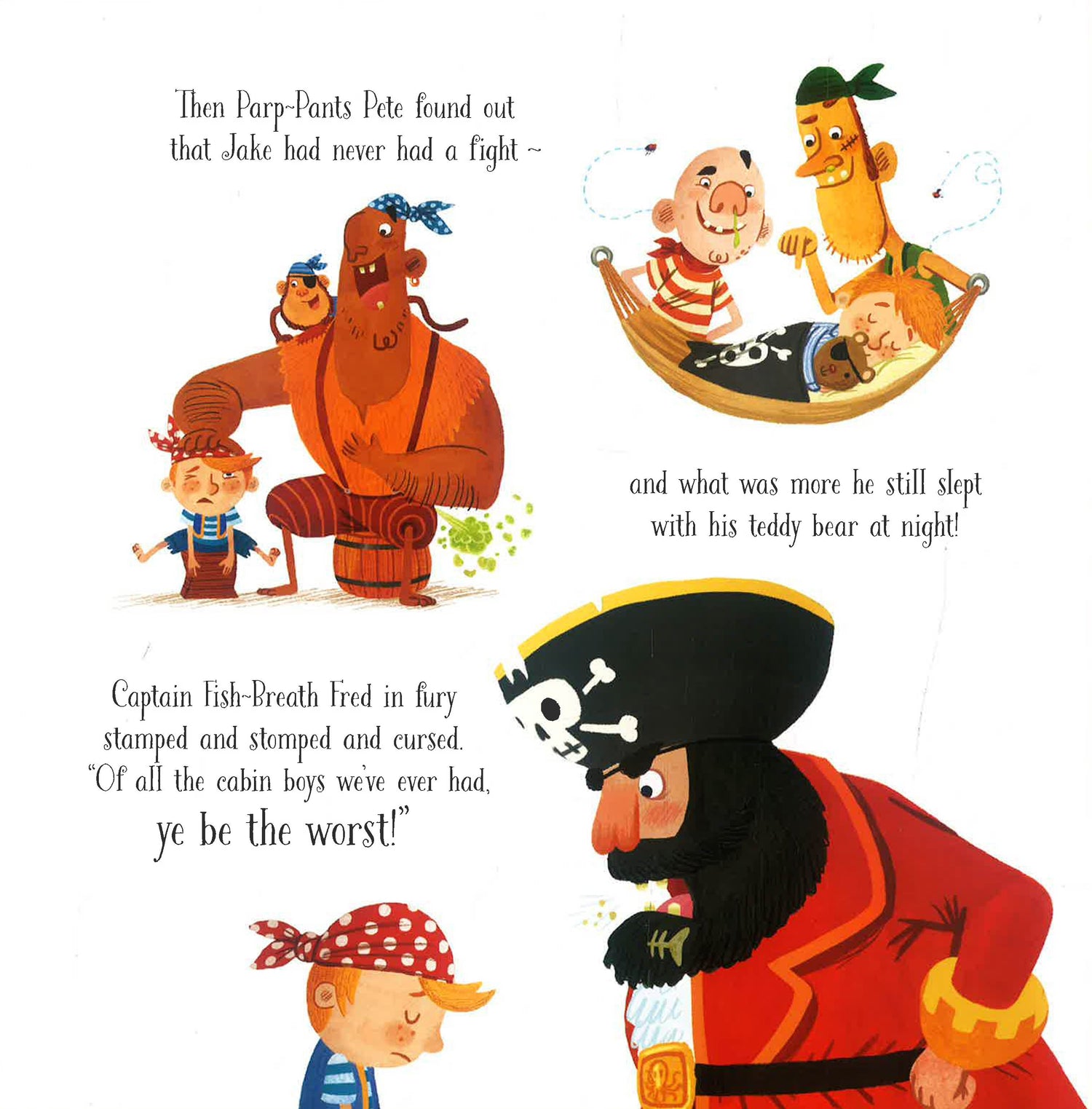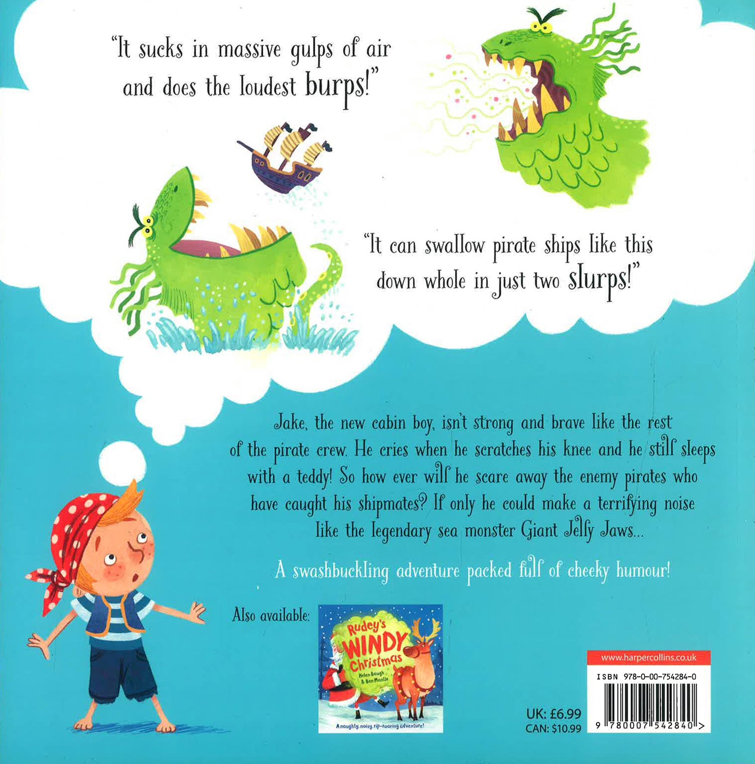 A rollicking, swashbuckling adventure, full of cheeky humour! From the creators of Rudey's Windy Christmas.Jake, the new cabin boy, isn't brave like the rest of the crew on the pirate ship; he can't even climb the rigging and he still sleeps with a teddy!So how ever will he scare away the enemy pirates who have caught his shipmates, Captain Fish Breath Fred, Snot Nose Ned and Butt Beard Bob?If only Jake could make an ear-splitting noise like the legendary sea monster, Giant Jelly Jaws... Perhaps an extra-fizzy drink might help?A beautifully illustrated, laugh-out-loud rhyming text - perfect for pirate fans!