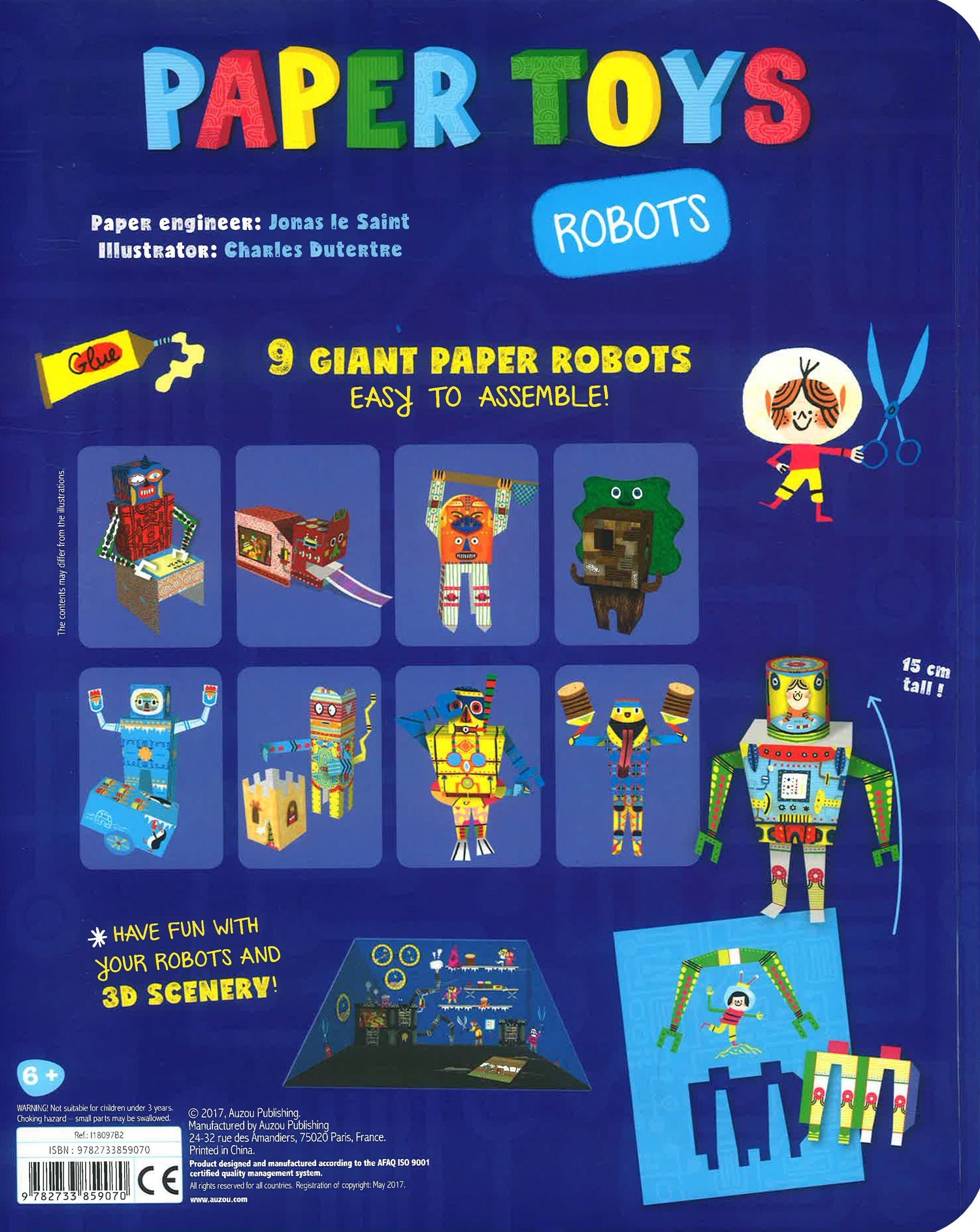 Make ten inventive robots - only using paper! Children will enjoy these original and satisfying activities which help to develop concentration skills and manual dexterity as well as being a pleasing and environmentally friendly alternative to plastic toys. Accompanied by a 3D paper theatre to help children to bring their creations to life.