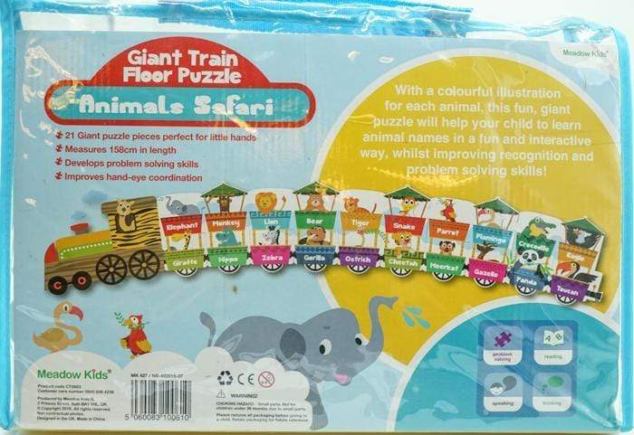 With giant puzzle pieces that are perfect for little hands to fit together, this 21-piece jigsaw will help children aged 3 and over learn animal names while developing their hand-eye coordination and problem-solving skills. Once the floor puzzle is complete, it measures a huge 158cm in length! The bright colours and friendly characters make this a puzzle that children will return to time and time again. Ages 3 plus Packaging dimensions: 230 x 380mm