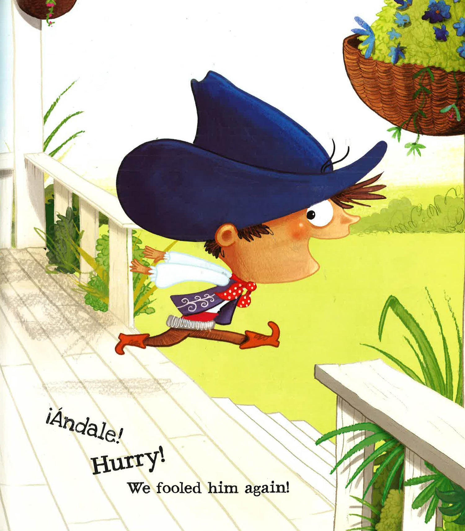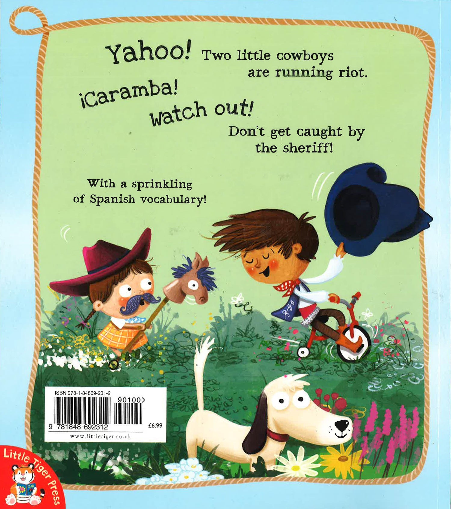 Grab something tasty. Uno, dos, tres. No time to clean up. Got to scram from this place. Yahoo! Two little cowboys are running riot. Watch out! Caramba! Mum the sheriff is out to catch them. Holler and hoot as you chase the naughty cowboys through their house and garden - and have yourself some rootin' tootin' fun! Celebrating imaginary play and dressing up, this cheeky rhyming picture book is perfect for story time. Teach your children some Spanish words too with a Spanish vocabulary dotted throughout the text and a handy glossary and pronunciation guide. With bright, funny illustrations from Tom Knight, this hilarious, tongue-in-cheek book is perfect for fans of Aliens Love Underpants.