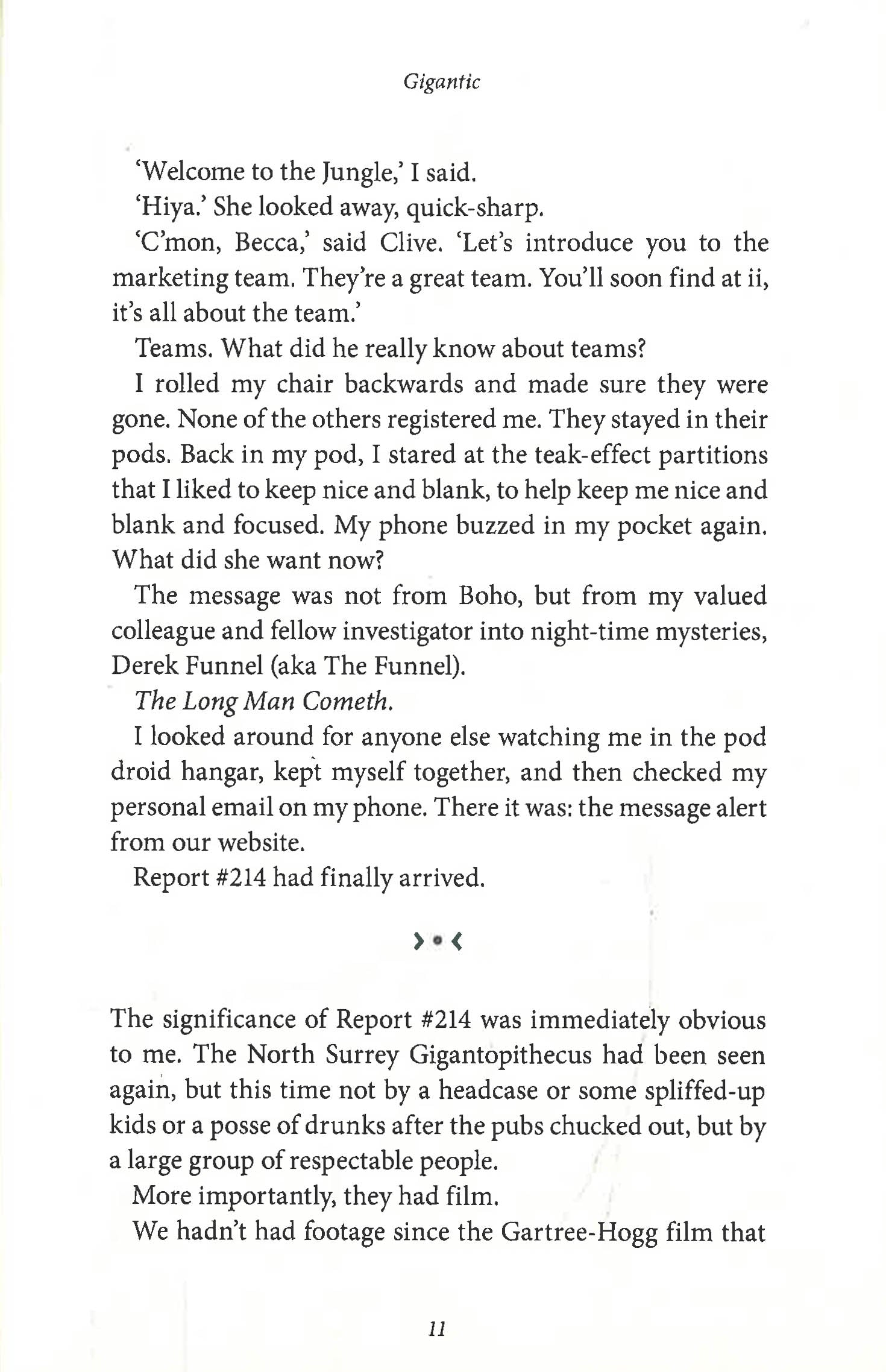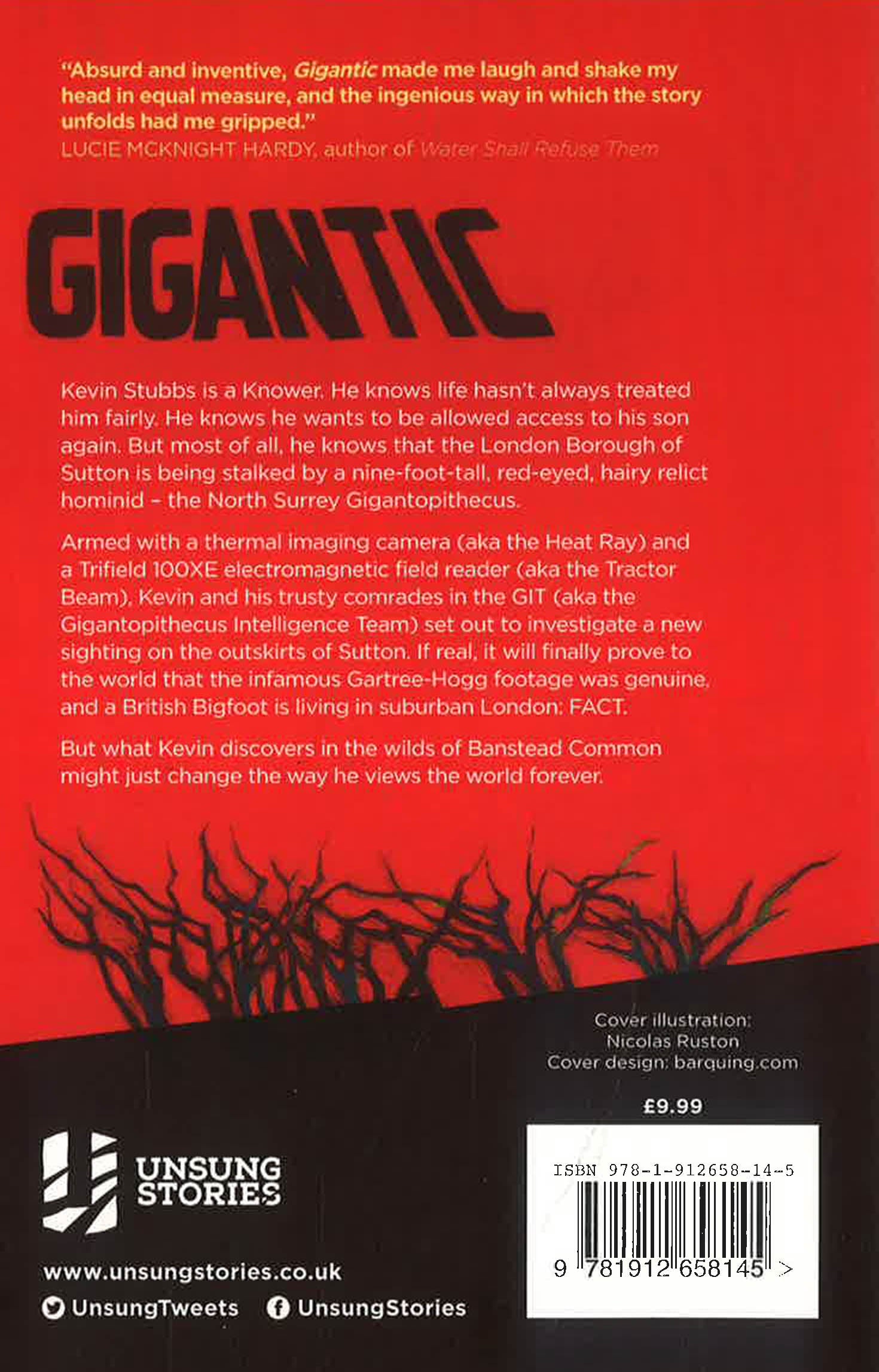 Kevin Stubbs knows that Sutton is being stalked by a nine-foot-tall relict hominid. He and his trusty comrades in the Gigantopithecus Intelligence Team set out to prove that Bigfoot is living in London: FACT. But what he discovers forces Kevin to face up to the very real, very scary prospect that he might have got it all terribly wrong.