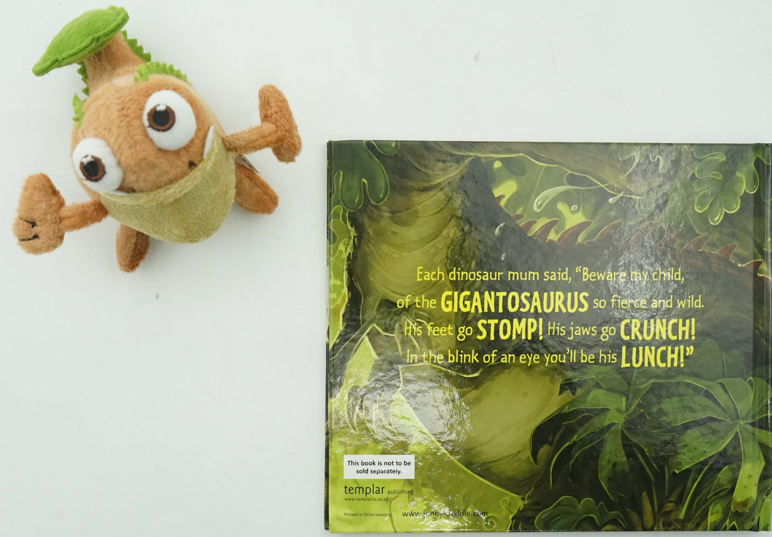 All young dinosaurs are warned about the scary Gigantosaurus. So Bonehead volunteers to be the dino-kids lookout whenever they go into the jungle to play. Unfortunately, he is the original boy-dinosaur who cried wolf, or in this case, GIGANTOSAURUS! Finally, Bonehead's friends refuse to believe his warnings and the Gigantosaurus really turns up! Enjoy this hilarious dinosaur adventure with your very own cuddly Bonehead.