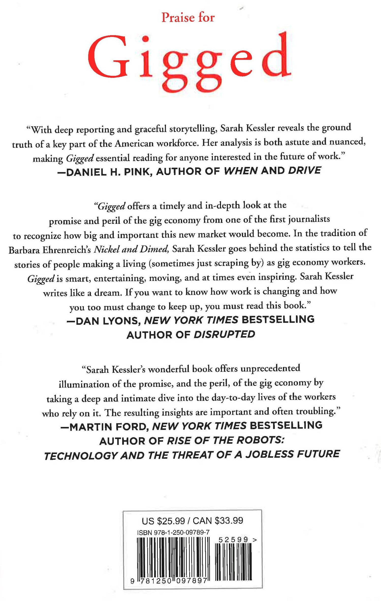 "With deep reporting and graceful storytelling, Sarah Kessler reveals the ground truth of a key part of the American workforce. Her analysis is both astute and nuanced, making GIGGED essential reading for anyone interested in the future of work." --Daniel H. Pink, author of WHEN and DRIVE. The full-time job is disappearing--is landing the right gig the new American Dream? One in three American workers is now a freelancer. This "gig economy"--one that provides neither the guarantee of steady hours nor benefits--emerged out of the digital era and has revolutionized the way we do business. High-profile tech start-ups such as Uber and Airbnb are constantly making headlines for the disruption they cause to the industries they overturn. But what are the effects of this disruption, from Wall Street down to Main Street? What challenges do employees and job-seekers face at every level of professional experience? In the tradition of the great business narratives of our time, Gigged offers deeply-sourced, up-close-and-personal accounts of our new economy. From the computer programmer who chooses exactly which hours he works each week, to the Uber driver who starts a union, to the charity worker who believes freelance gigs might just transform a declining rural town, journalist Sarah Kessler follows a wide range of individuals from across the country to provide a nuanced look at how the gig economy is playing out in real-time. Kessler wades through the hype and hyperbole to tackle the big questions: What does the future of work look like? Will the millennial generation do as well as their parents? How can we all find meaningful, well-paid work?