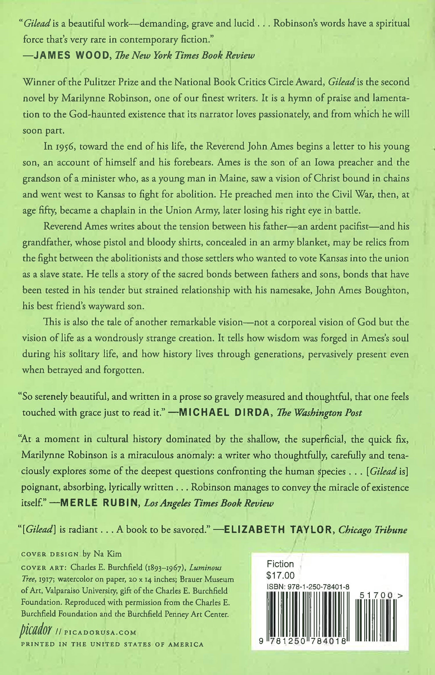 Winner of the Pulitzer Prize and National Book Critics Circle Award, GILEAD is a hymn of praise and lamentation to the God-haunted existence that Reverend Ames loves passionately, and from which he will soon part.