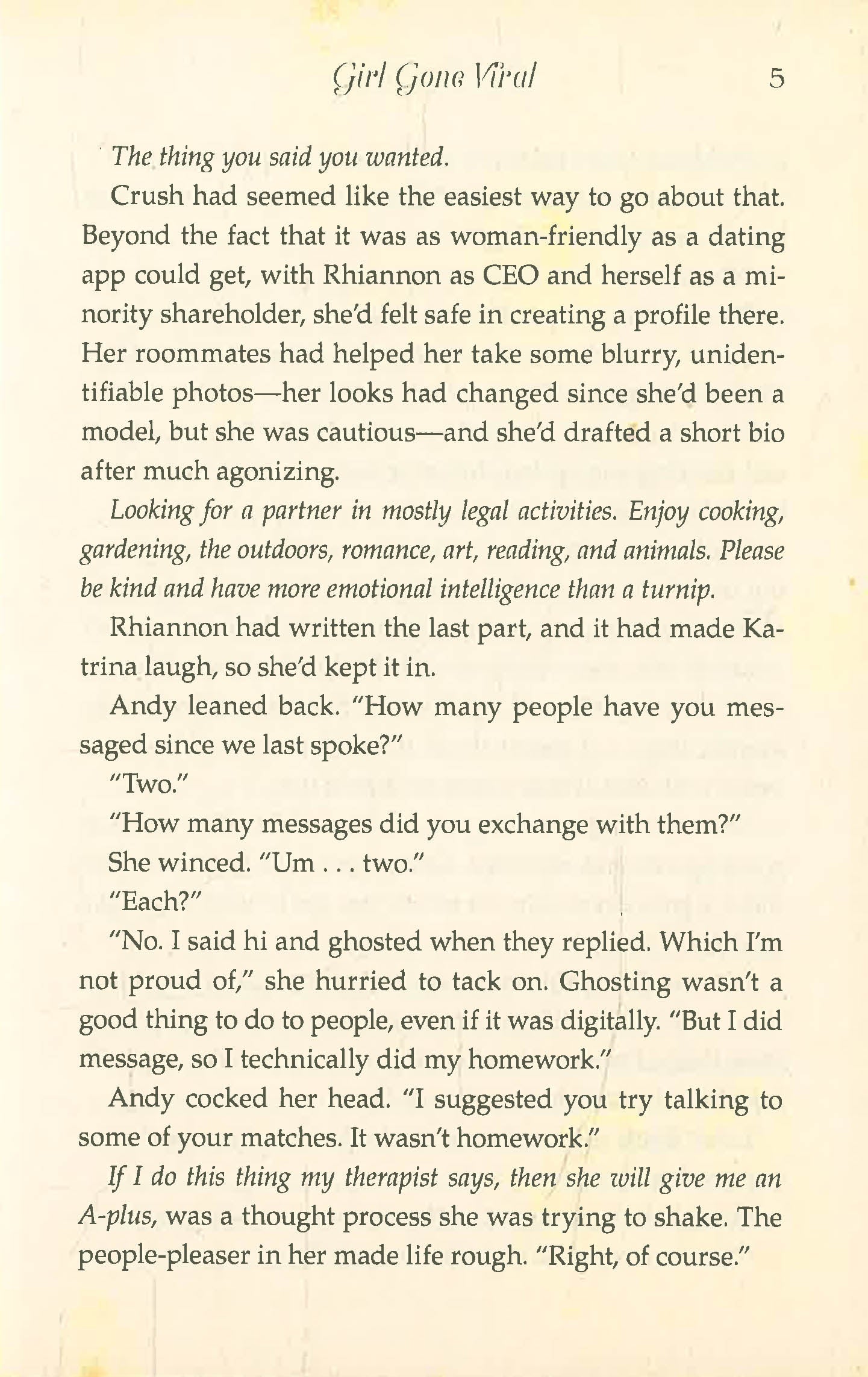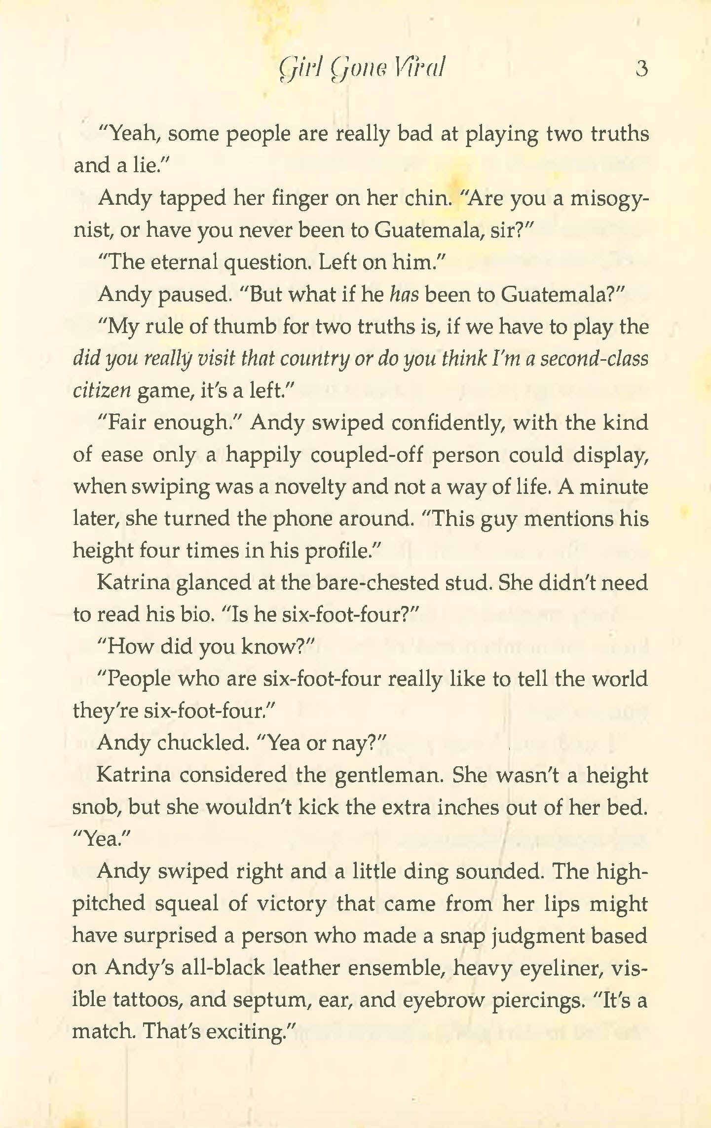 One minute, Katrina King's enjoying an innocent conversation with a hot guy at a coffee shop; the next, a stranger has live-tweeted the entire episode with a romantic meet-cute spin and #CafeBae is the new hashtag-du-jour. The problem? Katrina craves a low-profile life, and going viral threatens the peaceful world she's painstakingly built. Besides, #CafeBae isn't the man she's hungry for . . .