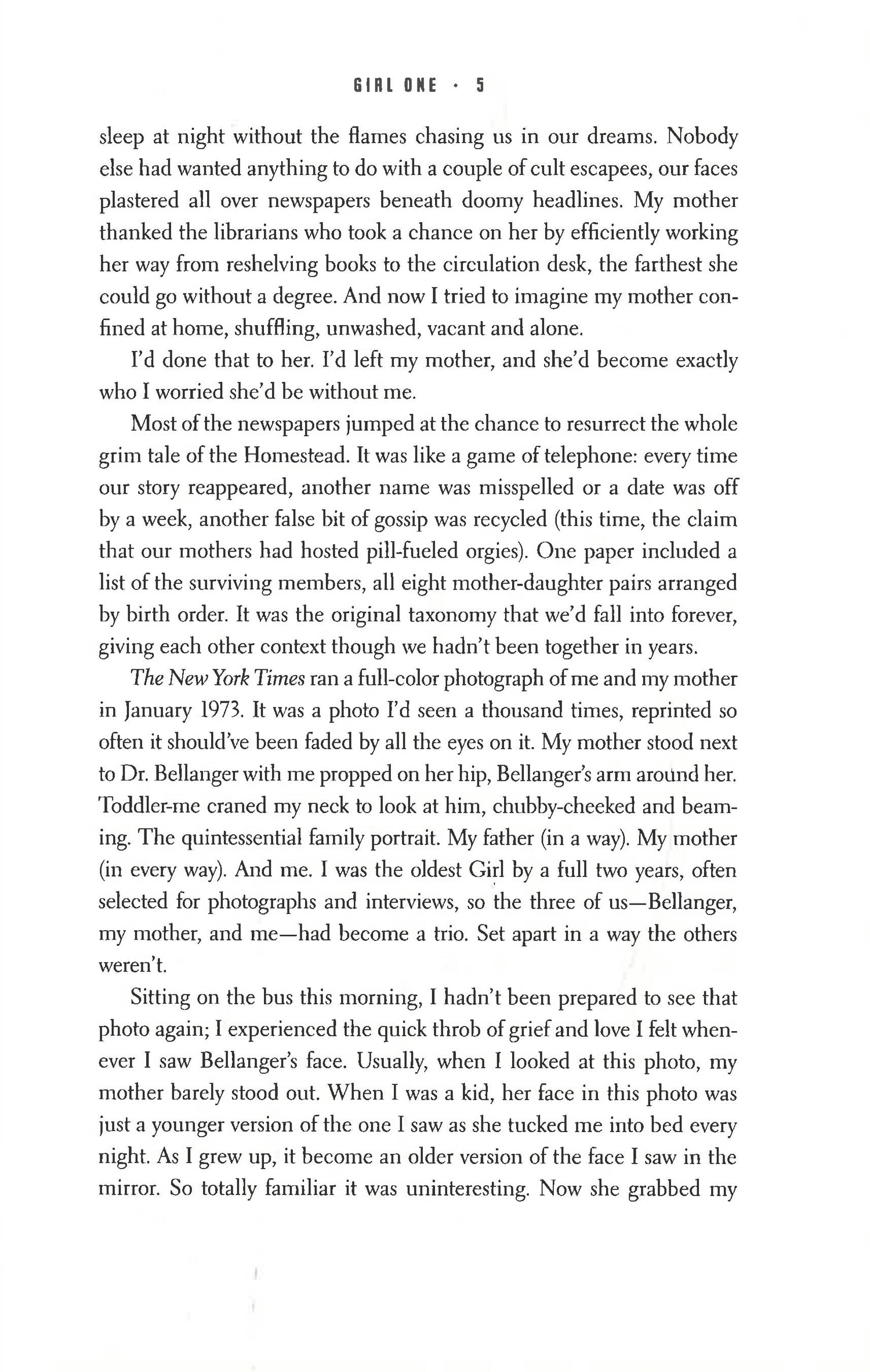 Josephine Morrow is Girl One, the first of nine Miracle Babies conceived without male DNA on an experimental commune known as the Homestead. The Girls were raised at the Homestead in the shadow of controversy?plagued by zealots calling them aberrations?until a suspicious fire claimed the lives of three people, leaving the survivors to scatter across the United States.