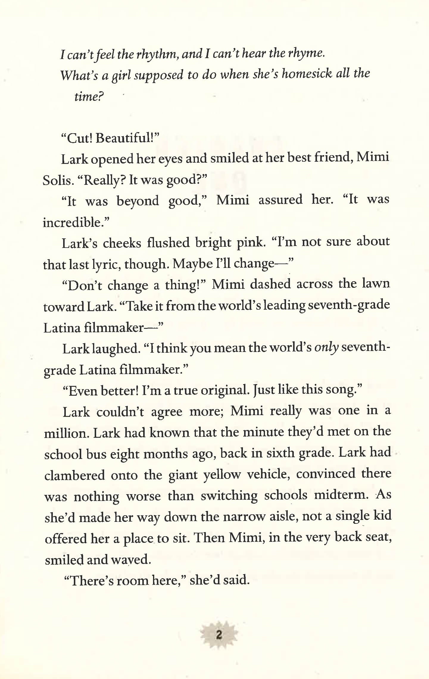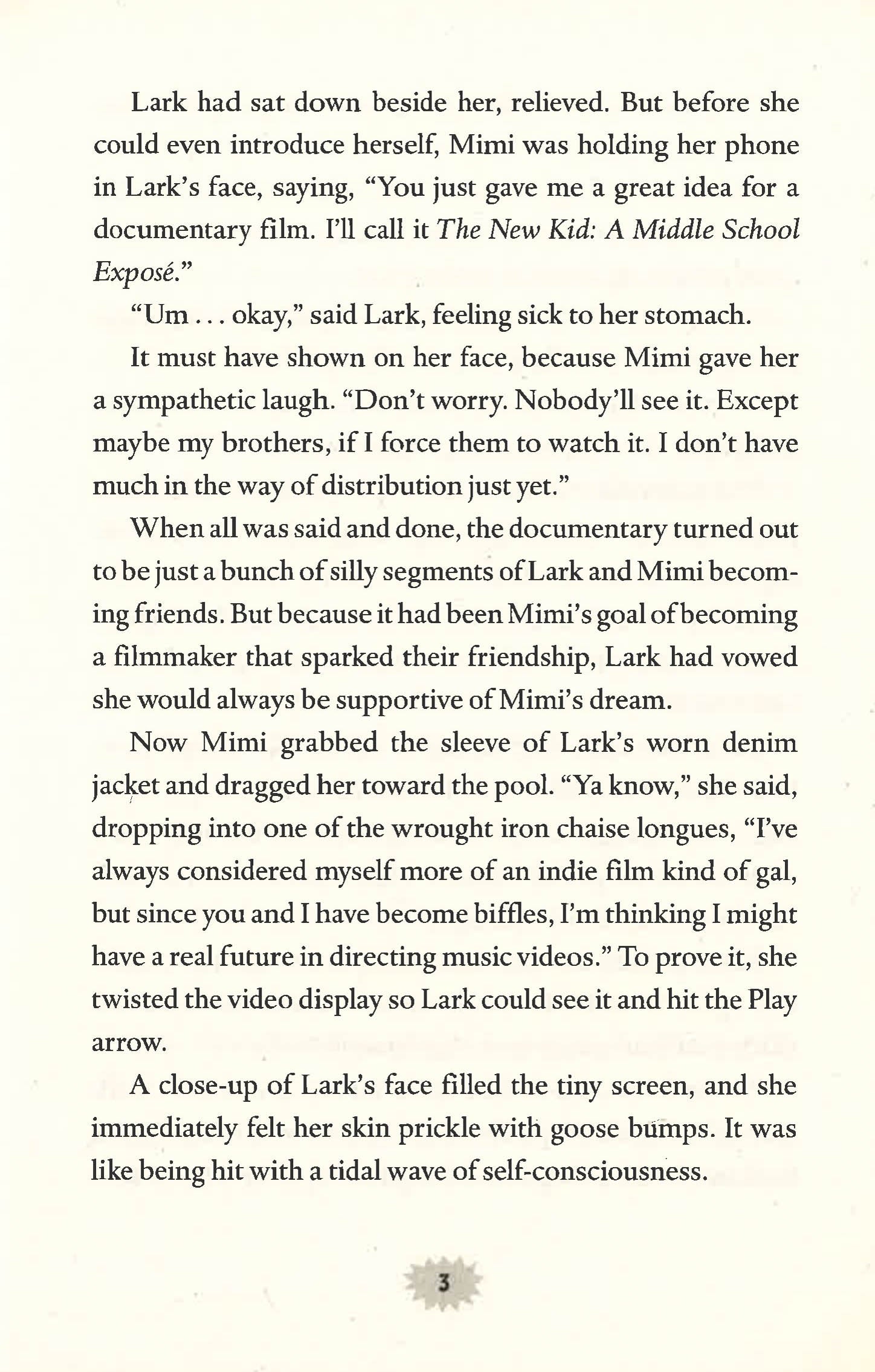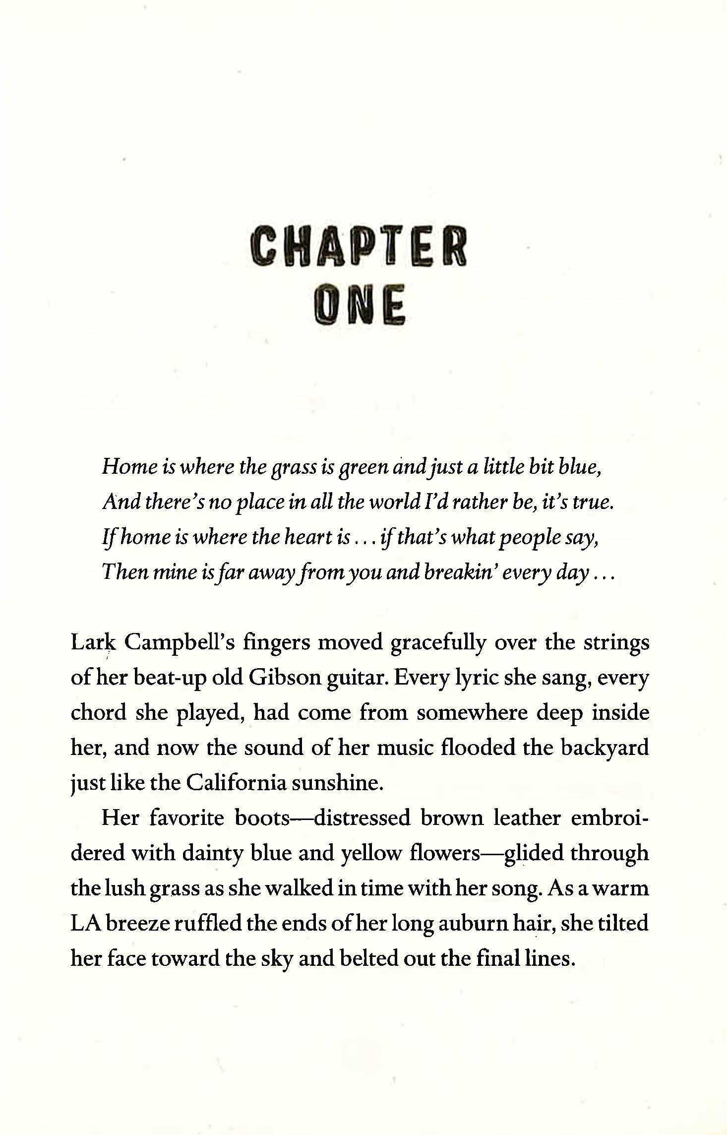 Talented but painfully shy Lark secretly writes feisty, heartfelt songs about school, crushes on boys, not getting along with her mum and missing her dad who lives in Nashville. But her songwriting becomes harder to keep secret when Lark's mother, a music record executive at her own label, announces that British boy band Abbey Road will be coming to live with them while they make their first album! Sharing her L.A. house with three noisy, mischievous rising stars isn't as glamorous as she expected, especially when things aren't going smoothly with the band members. When one of them plagiarises one of Lark's songs and passes it off as his own, will she gain the courage to step into the spotlight herself? Any pop music fan will LOVE this!